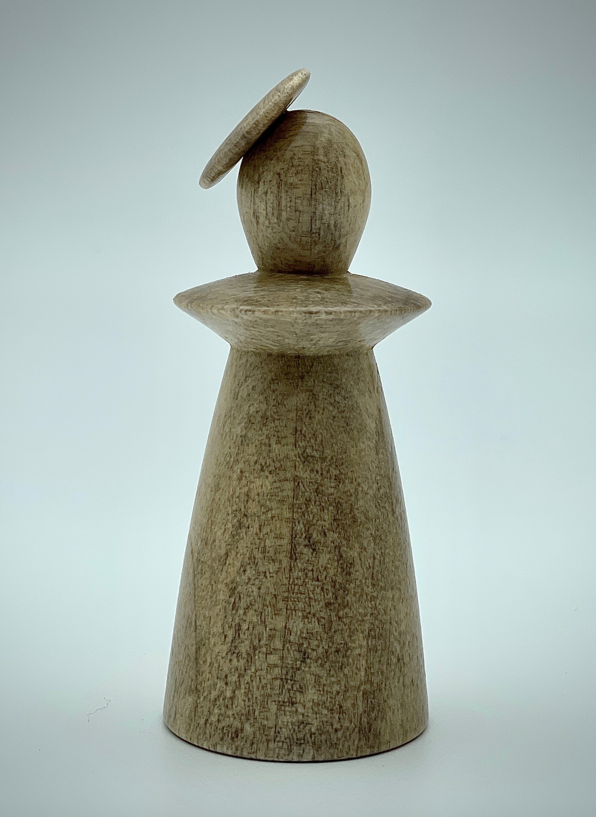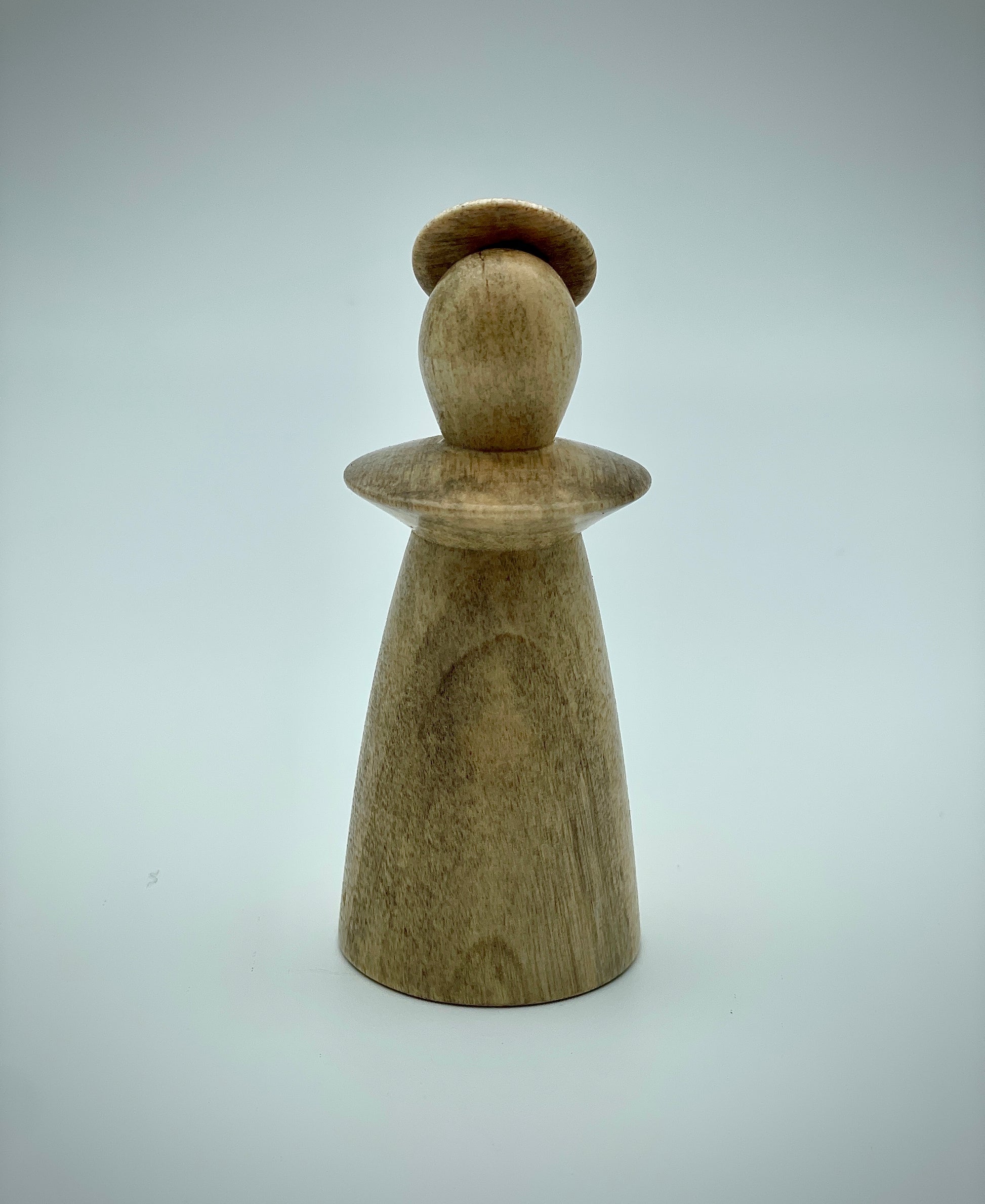 Expertly crafted from willow wood, the 4" tall x 1.5" wide Angel figurine exudes beauty and tranquility. Add a touch of serenity to your home or gift it to a loved one for a reminder of inner peace.