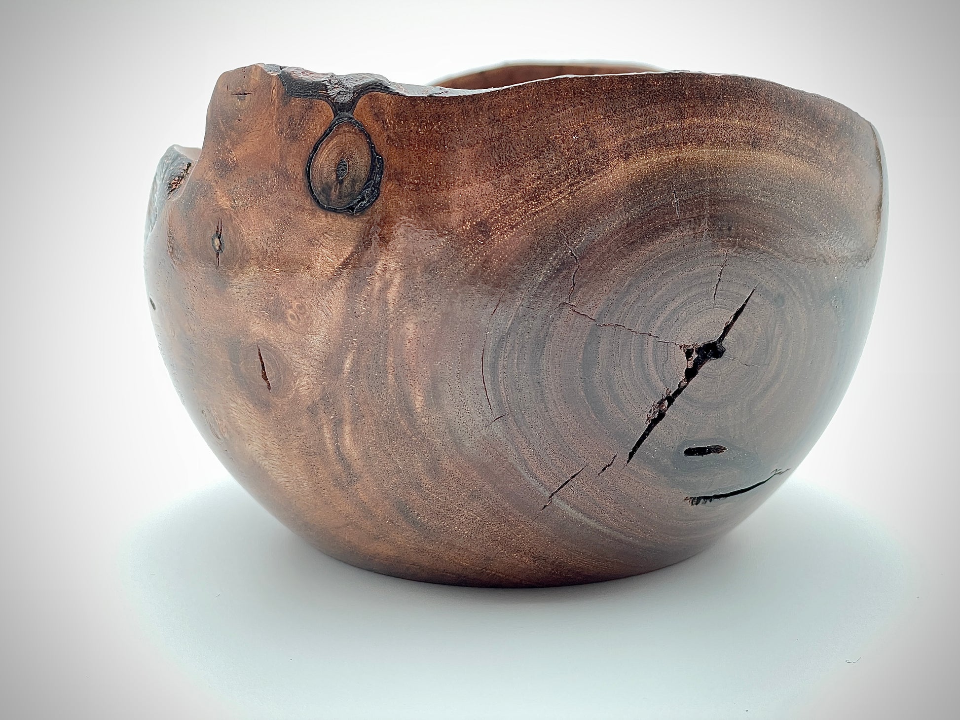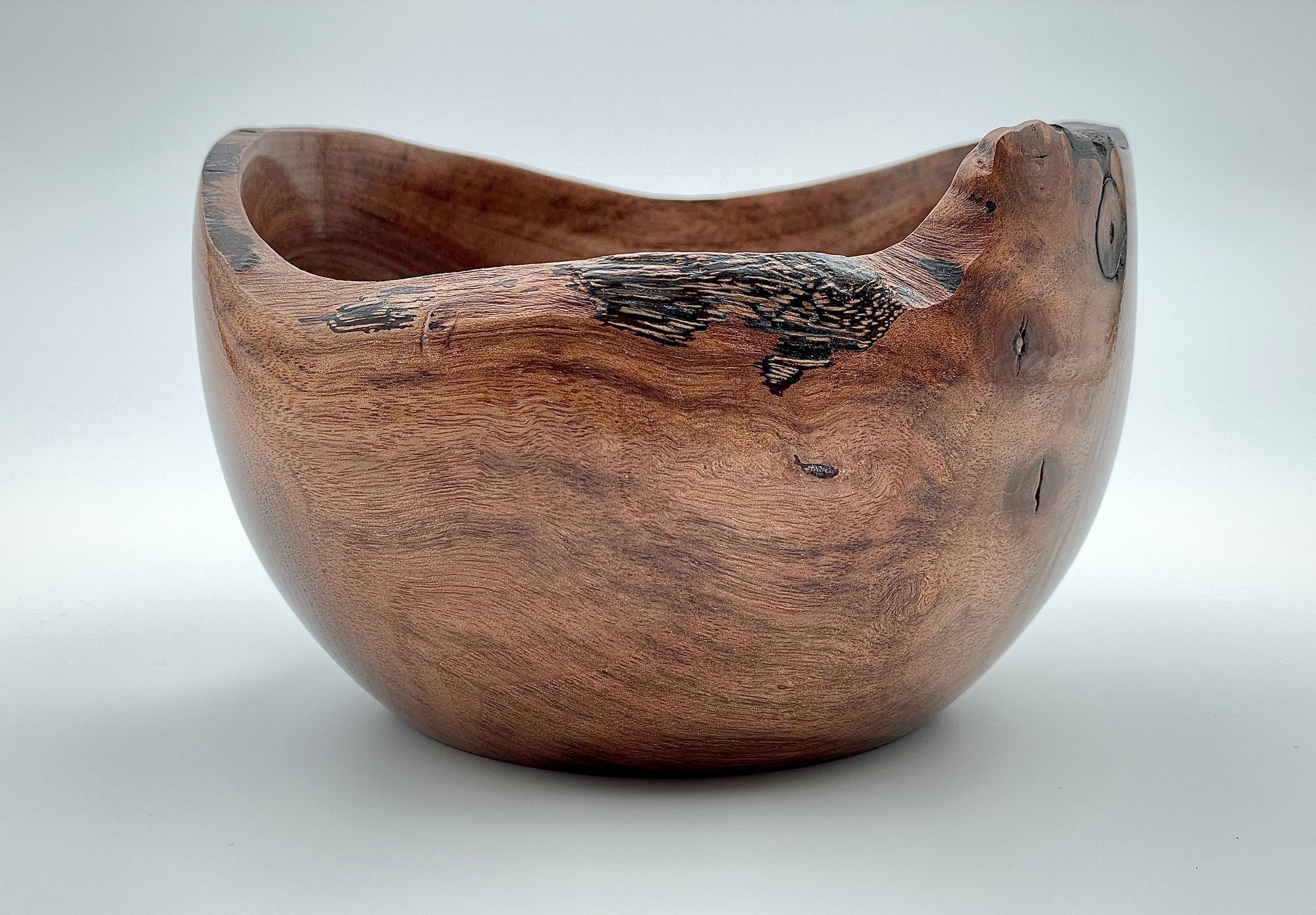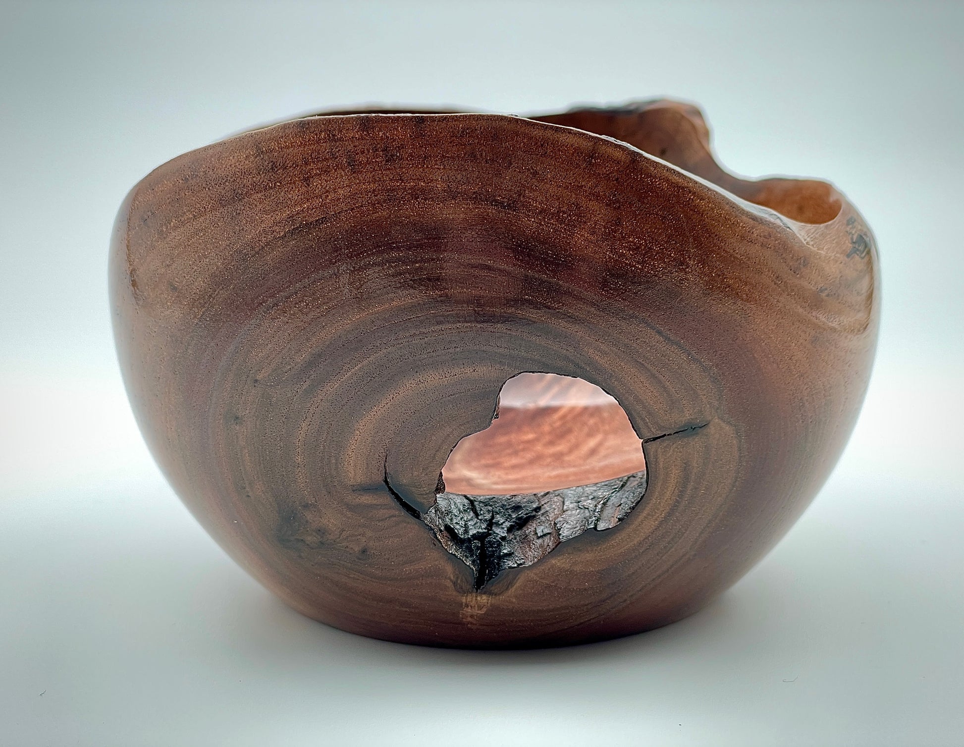 Add a touch of natural beauty to your home with our Black Walnut Bowl! Handcrafted with a stunning grain pattern and a natural edge, this decorative piece stands at 3.5" tall and 6" wide, making it a perfect addition to any space. Embrace its character and bring a sense of warmth to your decor.