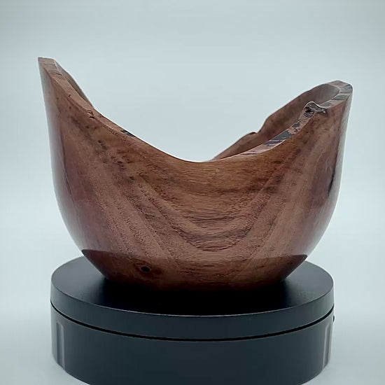 Enhance your home decor with this beautiful black walnut bowl. Standing 4.25 inches tall and 6 inches wide, its natural edge rim adds a unique touch. Perfect for displaying small items or as a centerpiece, this bowl combines elegance with functionality, making it a charming addition to any space.