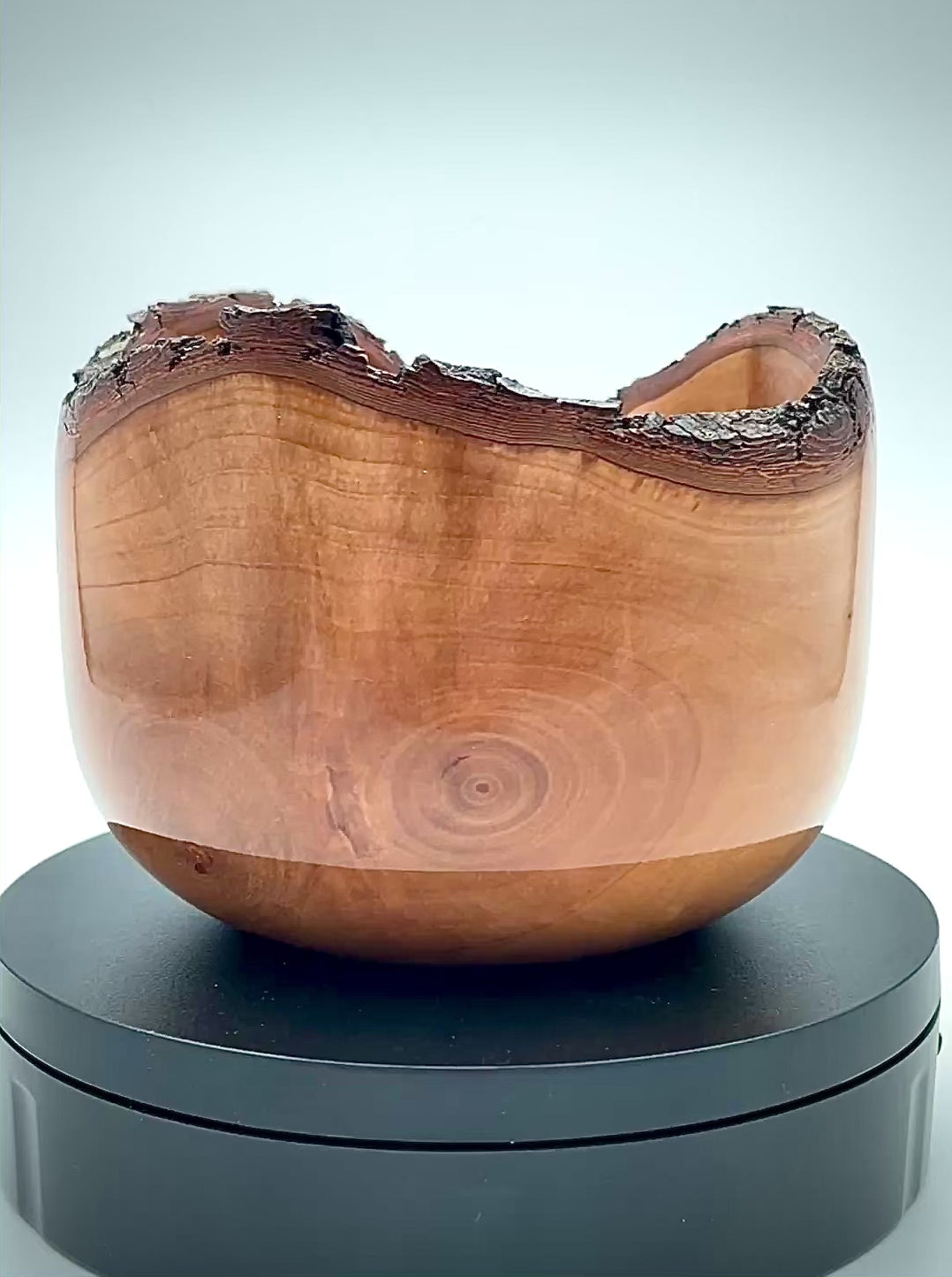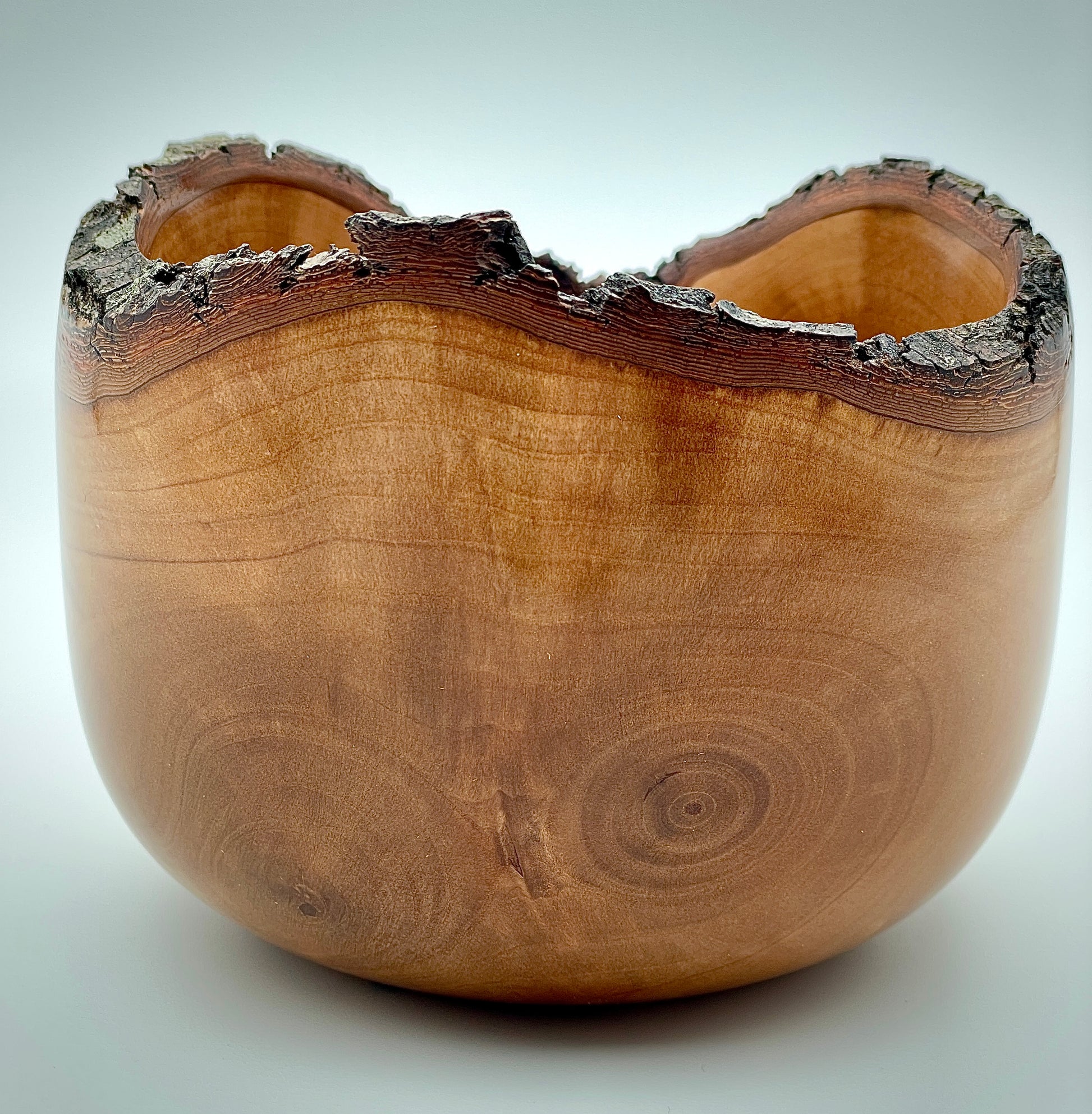 Add a unique touch to your home with our Bradford pear live edge bowl! Its stunning grain pattern and golden color make it a beautiful decorative piece that will add character and warmth to any space. Bring nature indoors with this exquisite bowl.