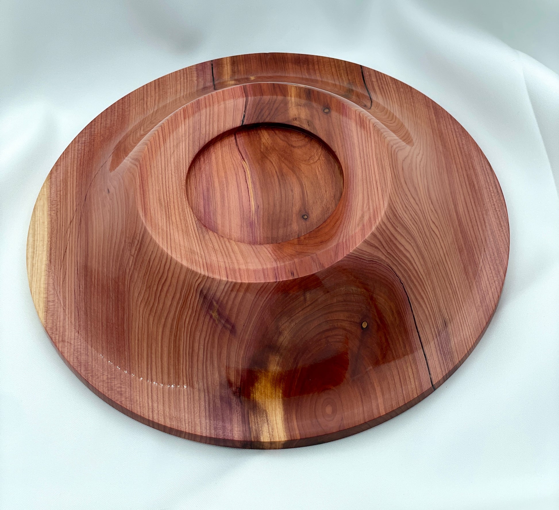 Transform your home décor with this captivating Western Red Cedar plate. Showcasing nature's artistry through its vibrant red tones and distinctive grain patterns, this 7.5" wide by 1.5" tall decorative piece commands attention wherever it's displayed. Perfect as a centerpiece, wall accent, or gift for someone special, this handcrafted cedar plate brings the warmth and beauty of natural wood into your space with undeniable style.