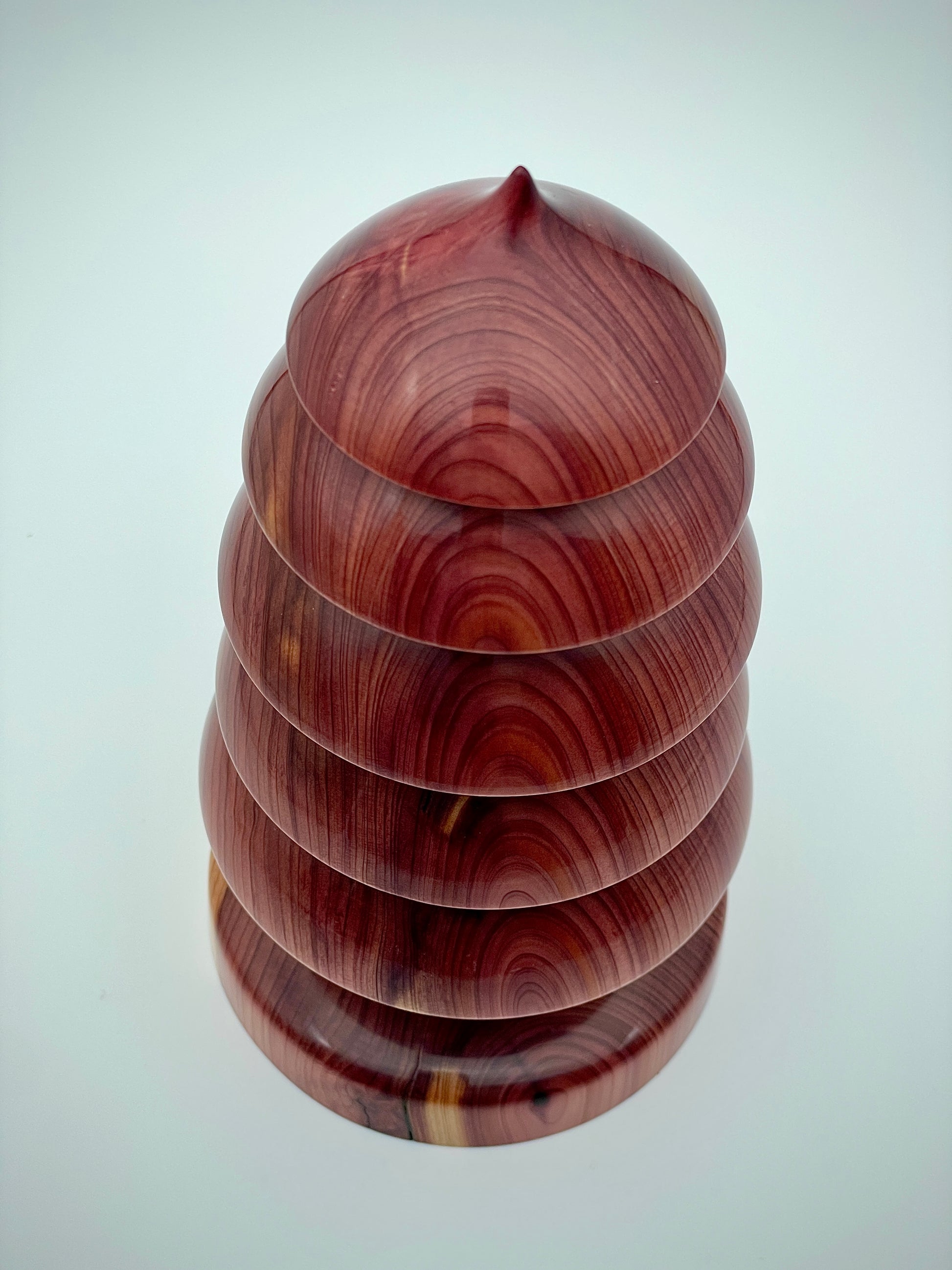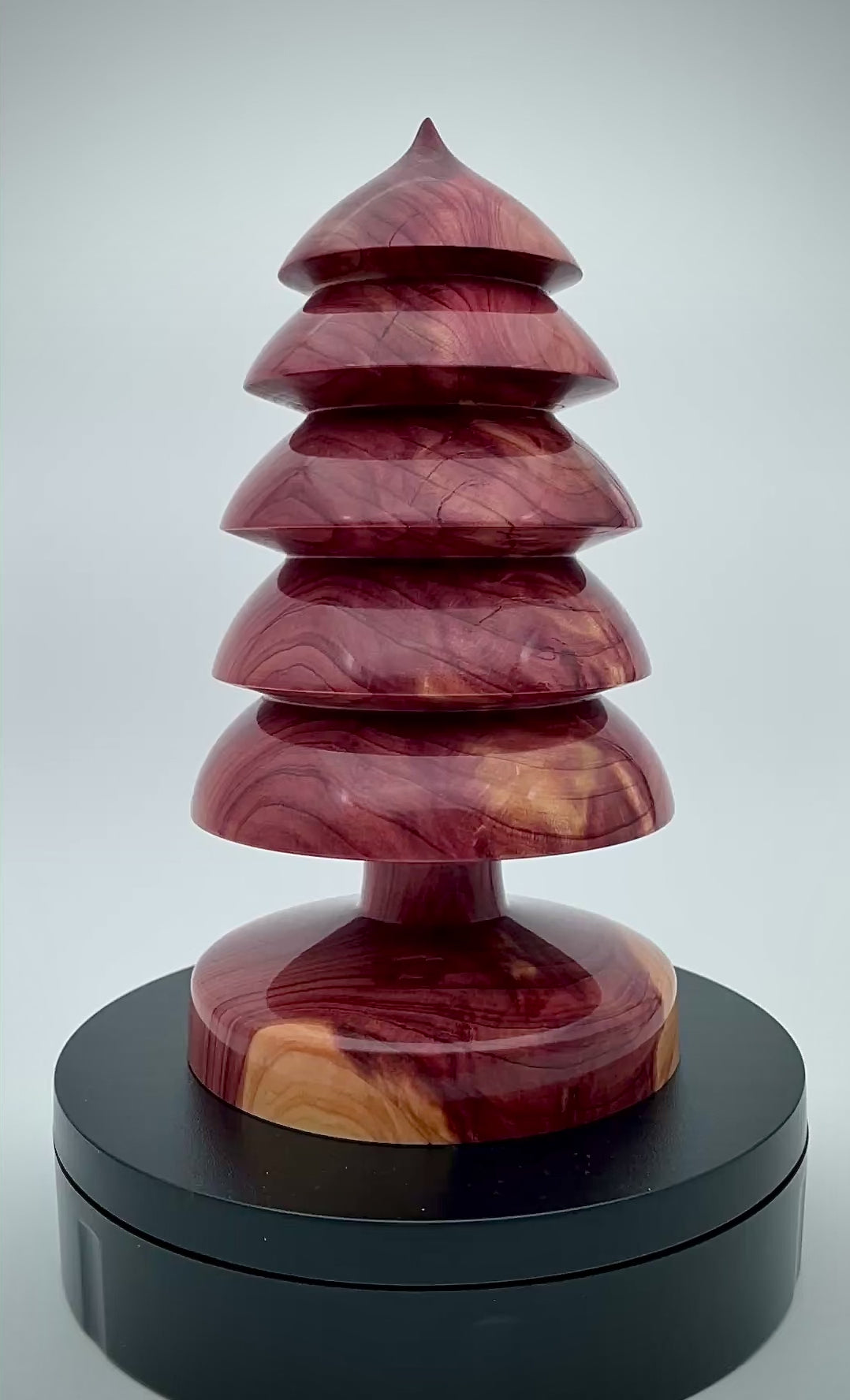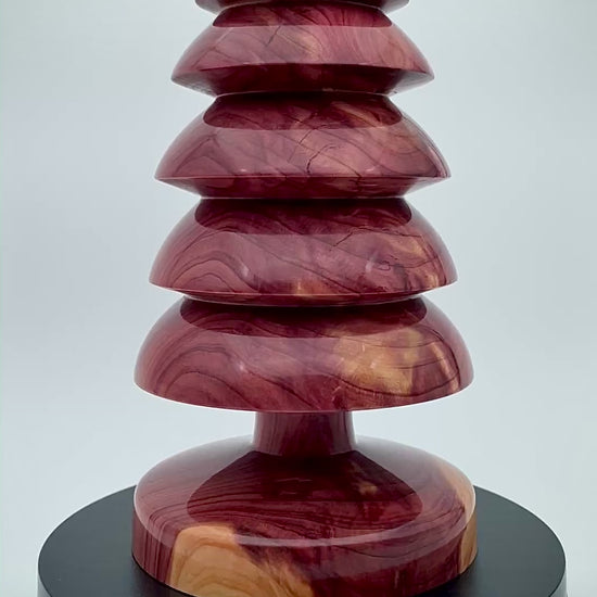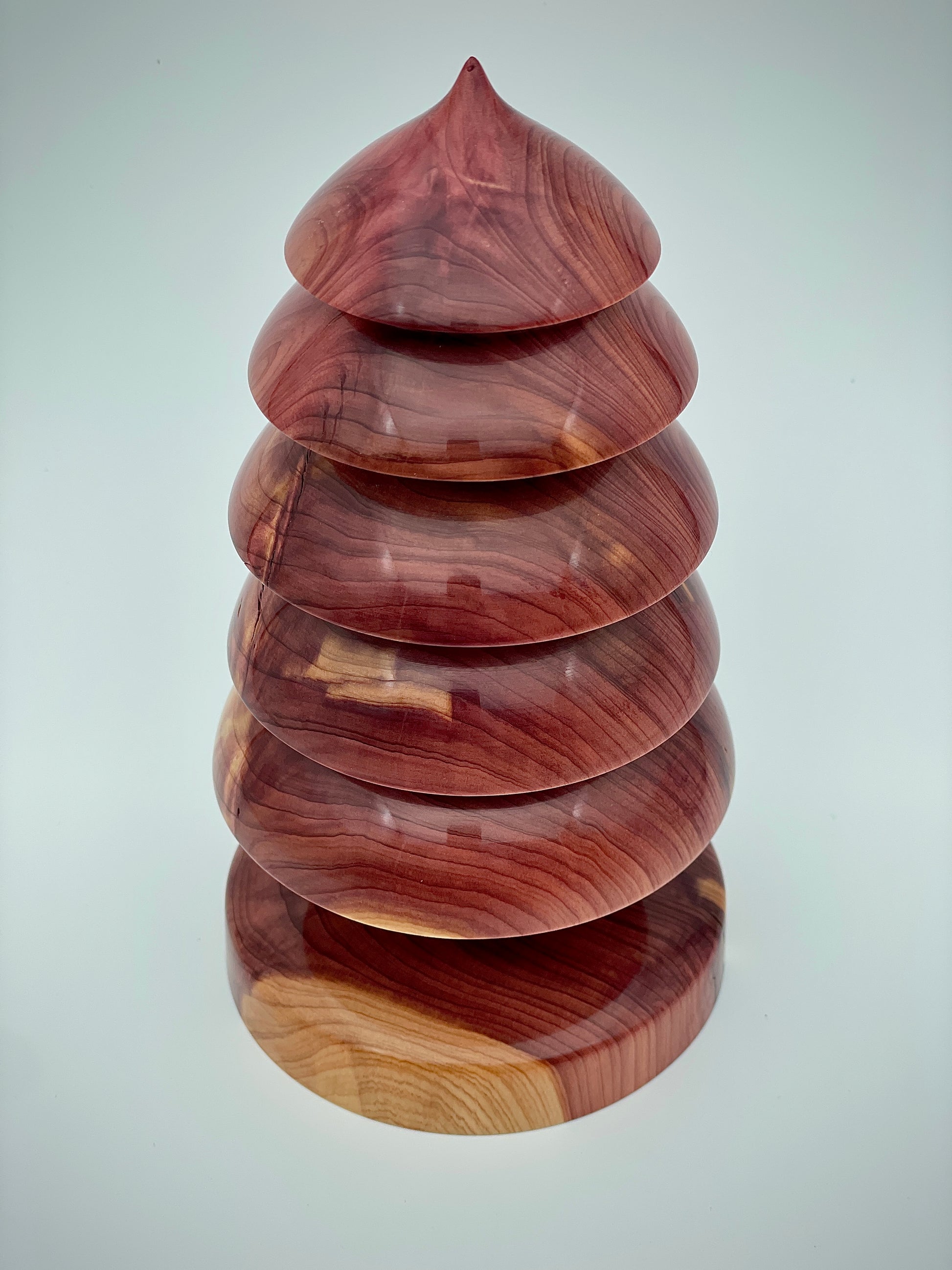 Crafted from western redwood, our Christmas tree boasts a rich red color and striking grain pattern. Standing at 6.5" tall and 3.75" wide, it is sure to be the focal point of any holiday display. Elevate your decor with this stunning, handcrafted piece.