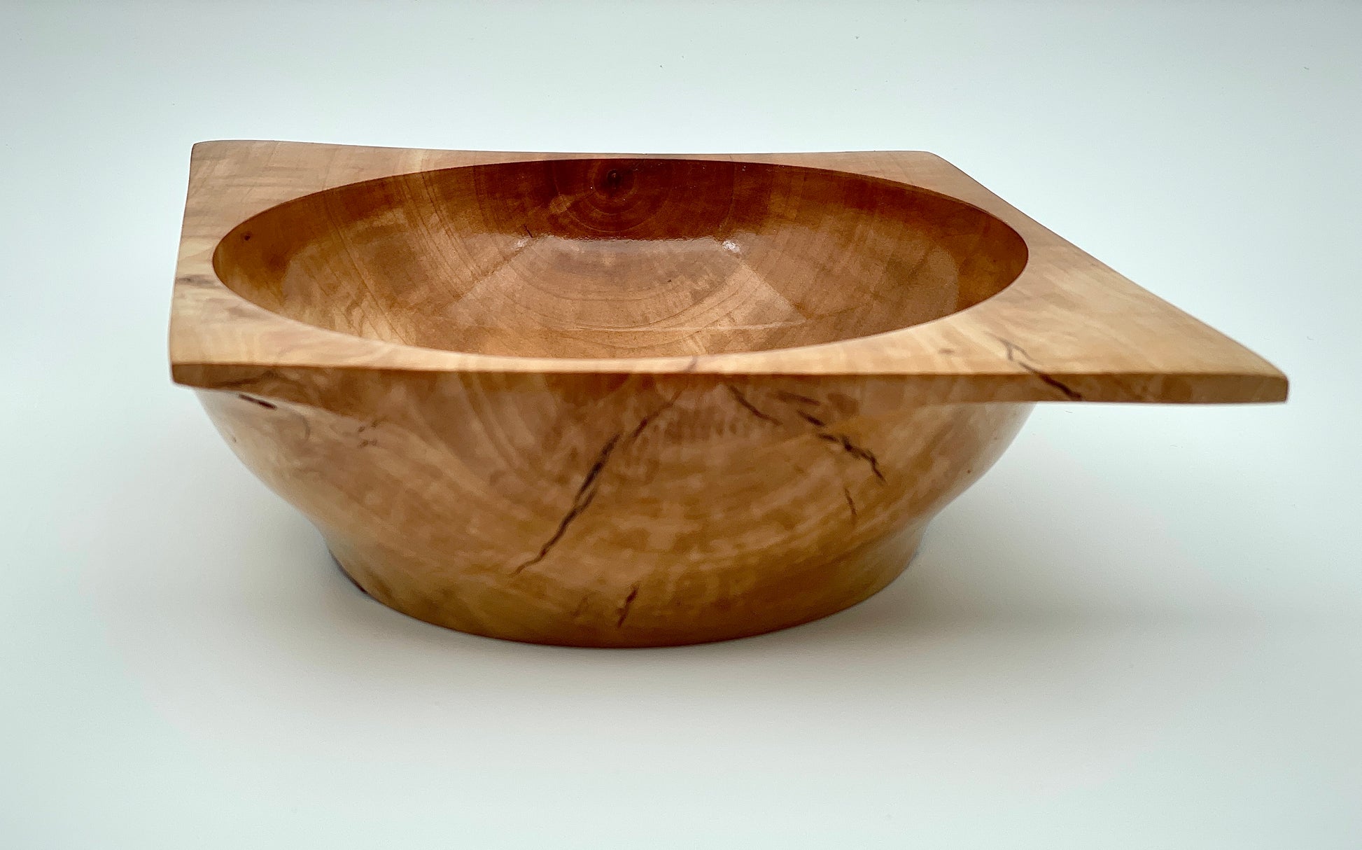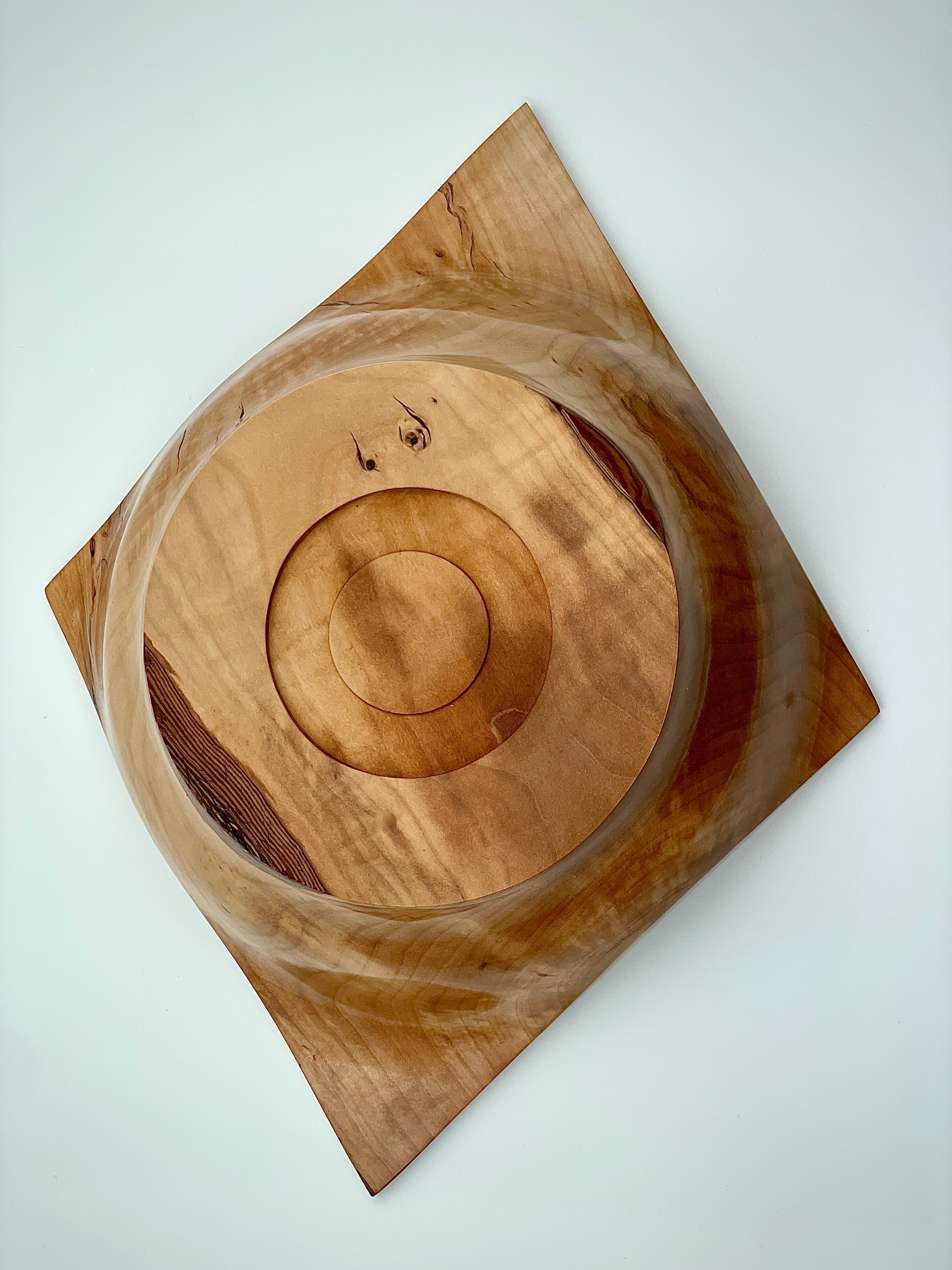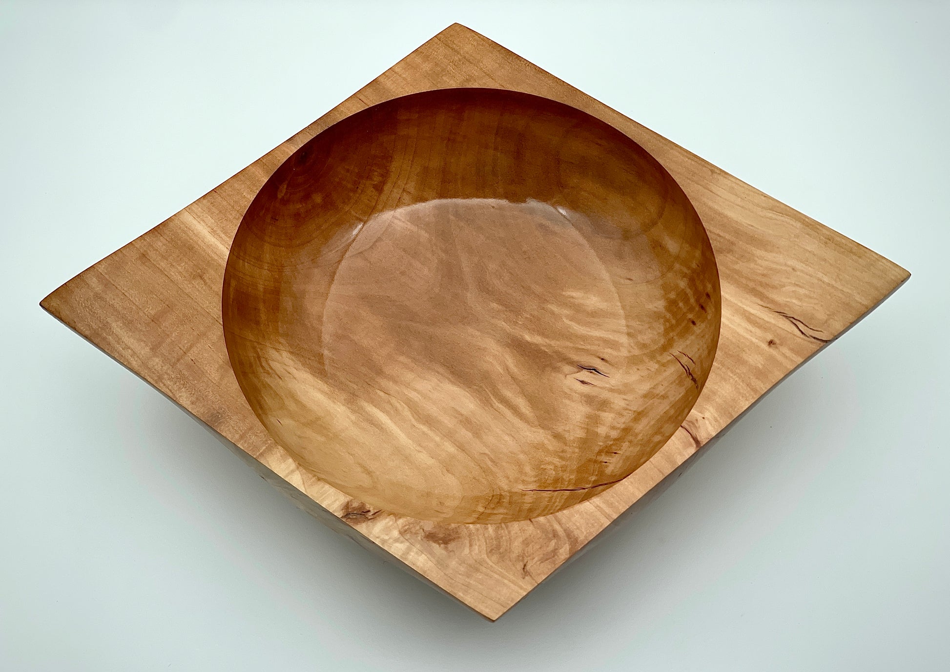 Elevate your decor with our stunning diamond-shaped bowl. Made from Bradford pear, its rich color and beautiful grain pattern will add a touch of elegance to any room. Measuring 2.25" tall and 6.5" wide, it's the perfect size for displaying small trinkets or standing alone. Elevate your space with this decorative piece.