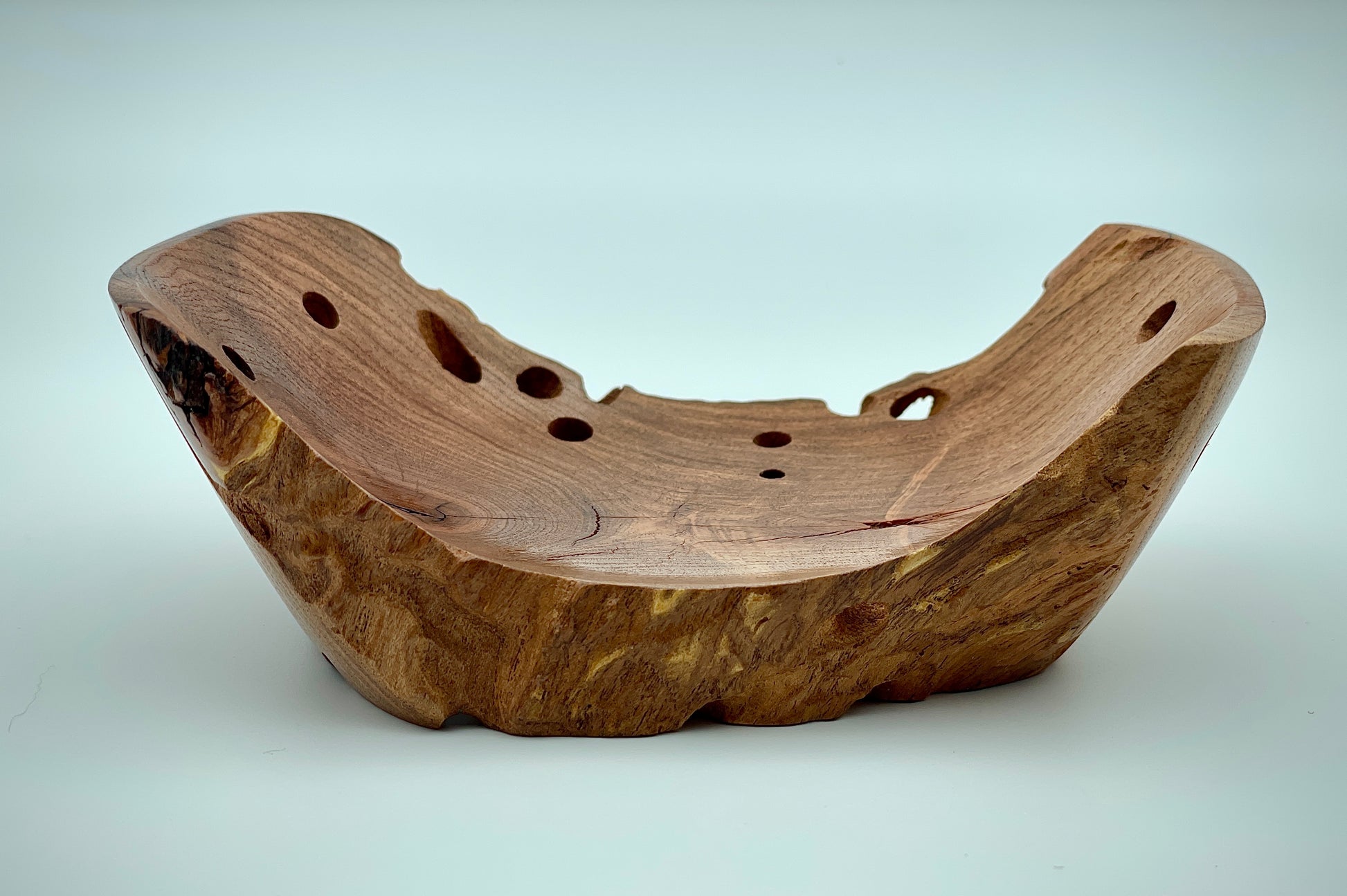 Add a touch of rustic charm to your home with this mesquite decorative dish. The unique wood grain and 6" wide x 2" tall size make it a stand-out piece. Perfect for holding small items or as a statement piece on its own. Embrace the beauty and character of this one-of-a-kind dish.