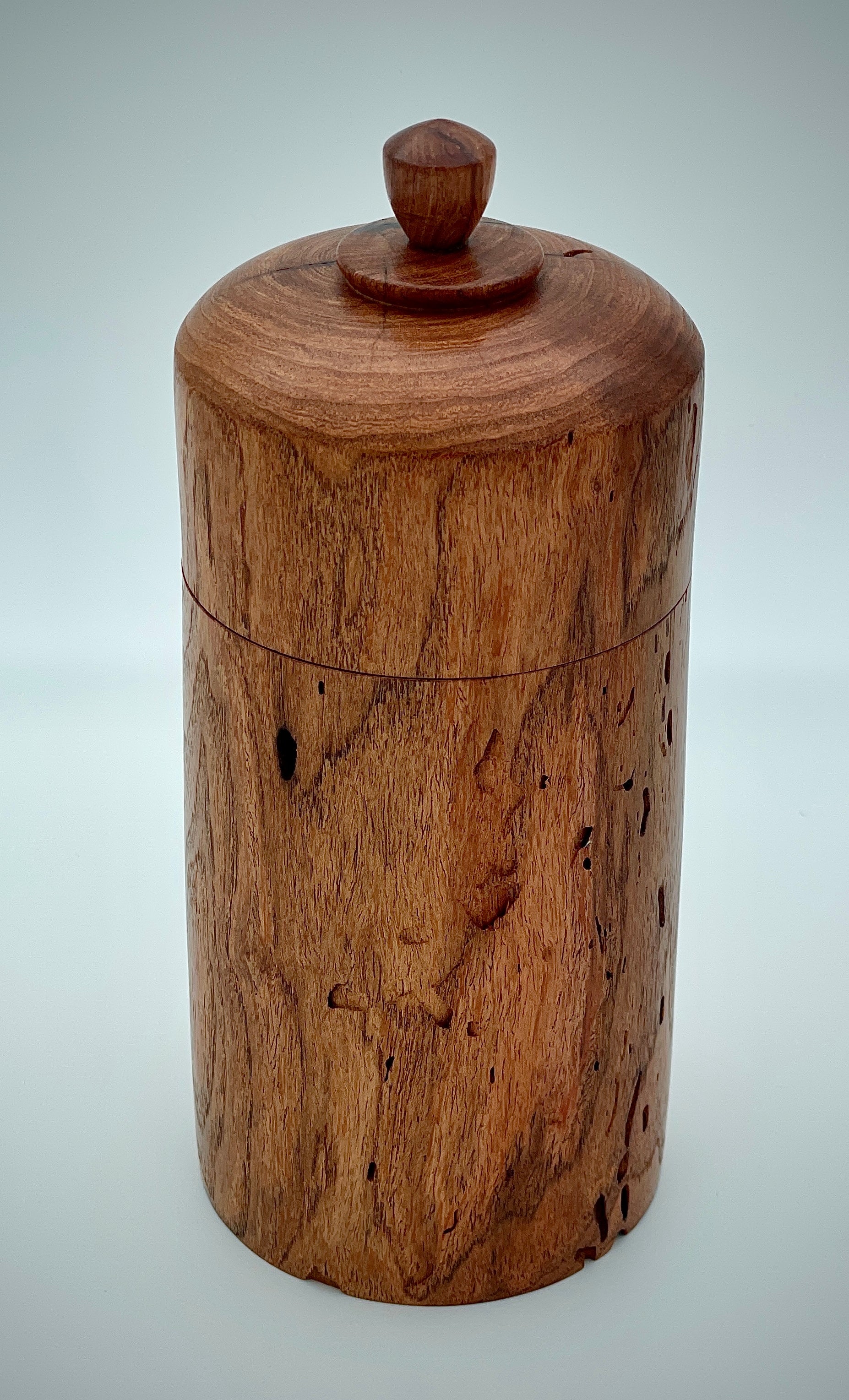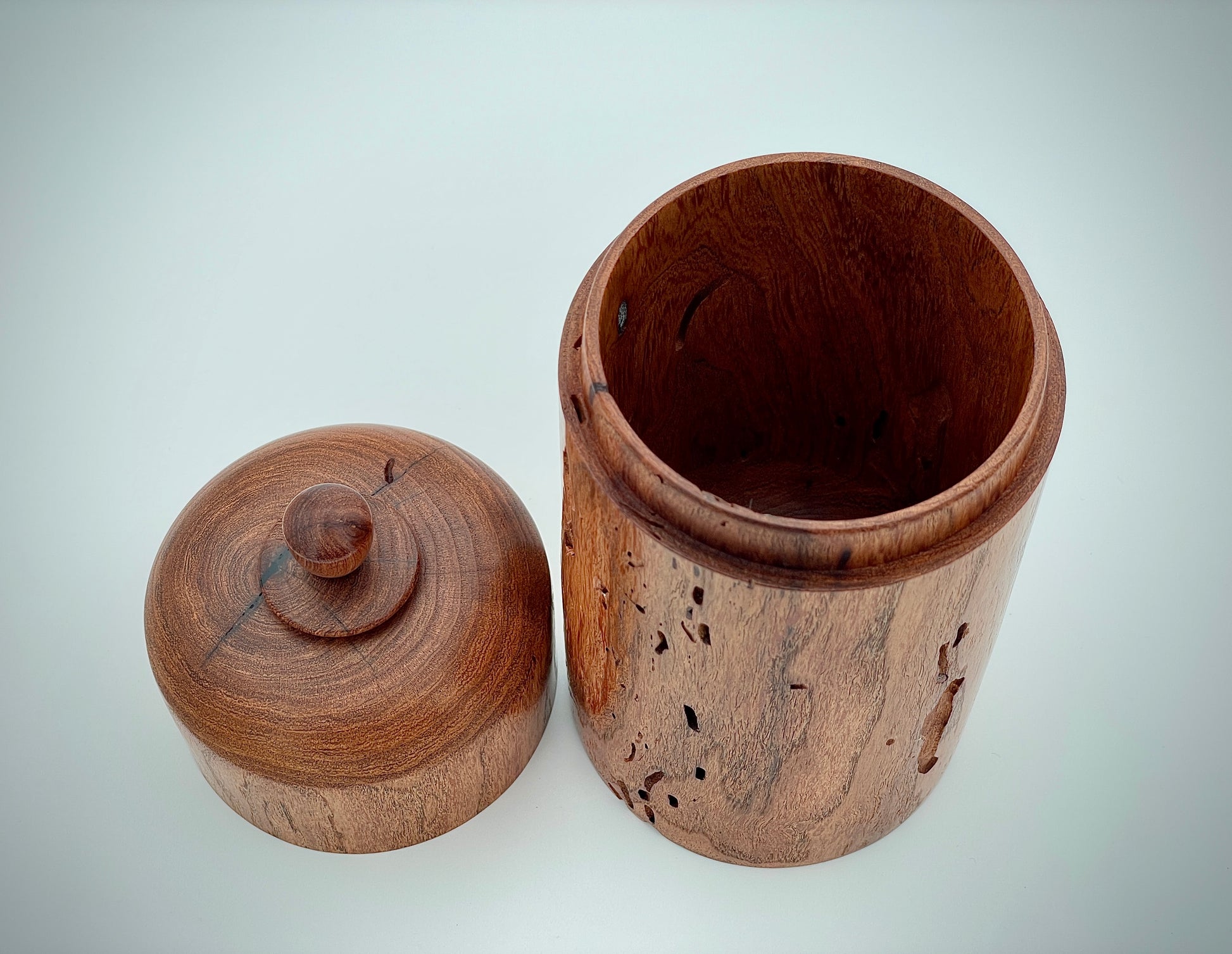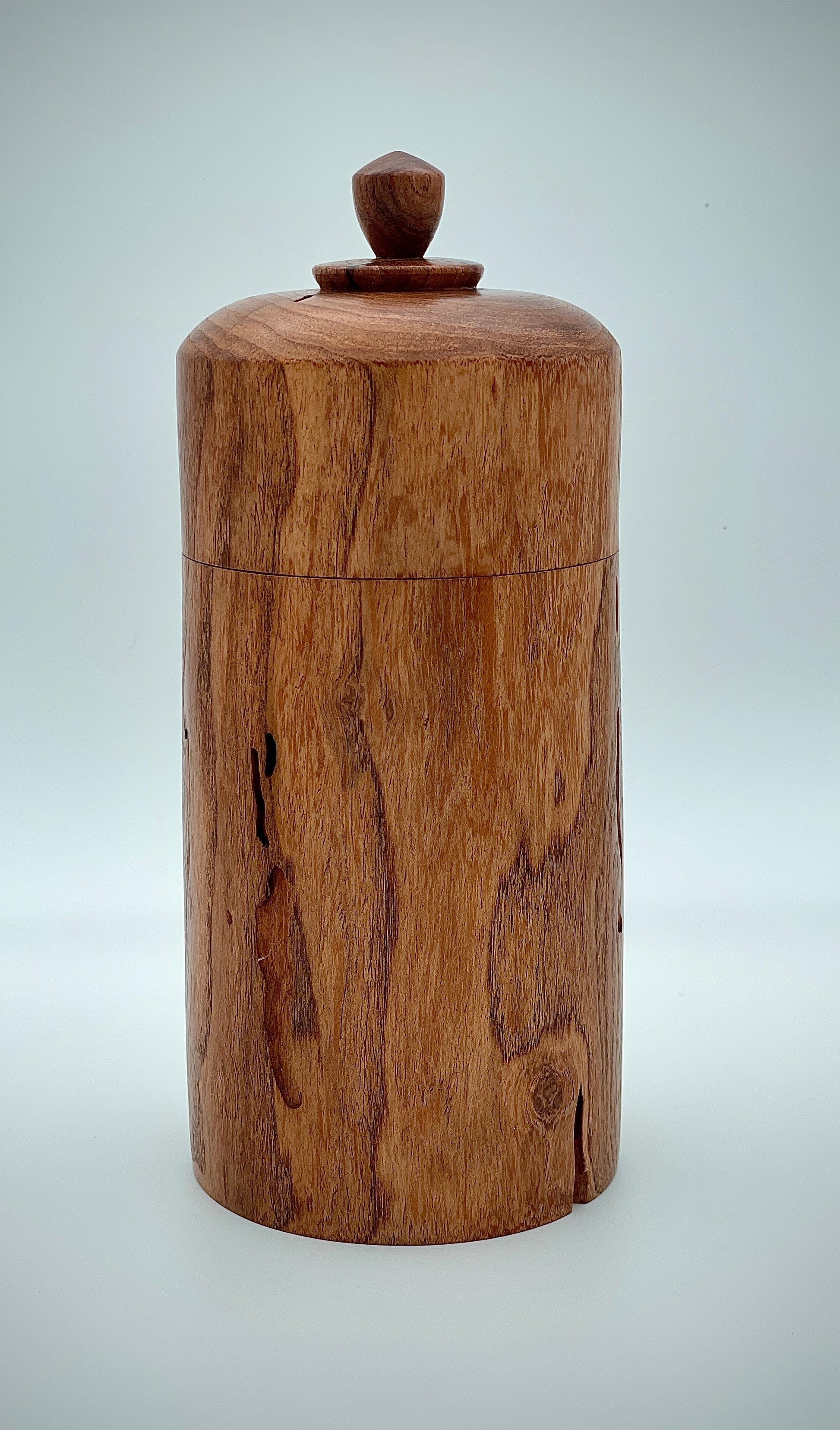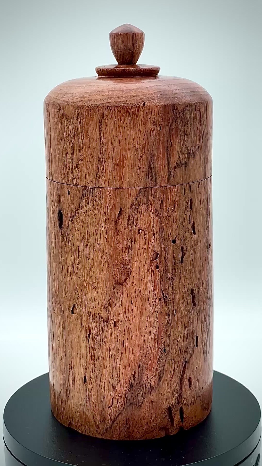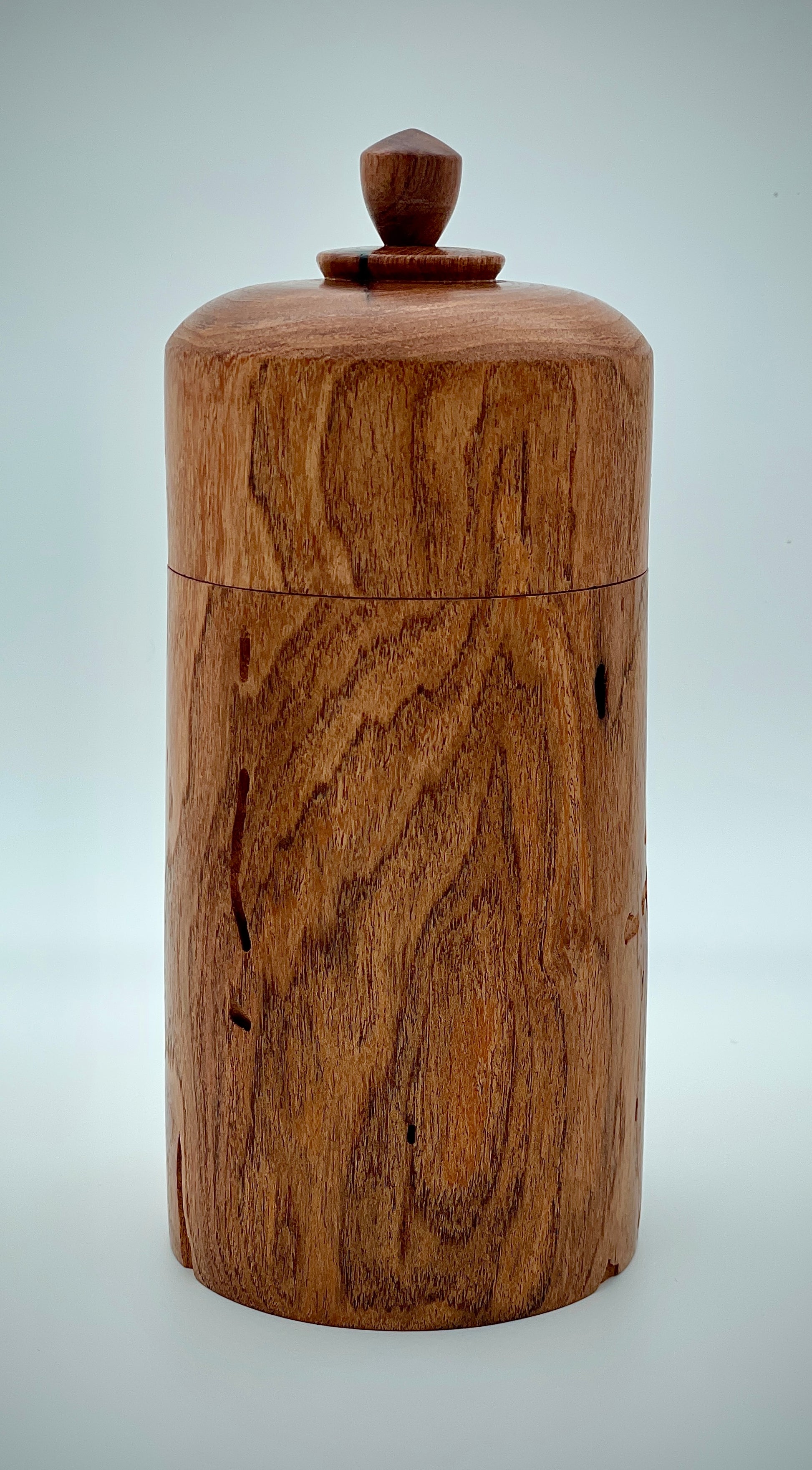 Elevate your space with our stunning mesquite lidded box! Crafted with natural character and a beautiful grain, it stands tall at 8.5 inches and 4 inches wide. Perfect for storing trinkets or as a decorative piece. Add a touch of nature to your home today!