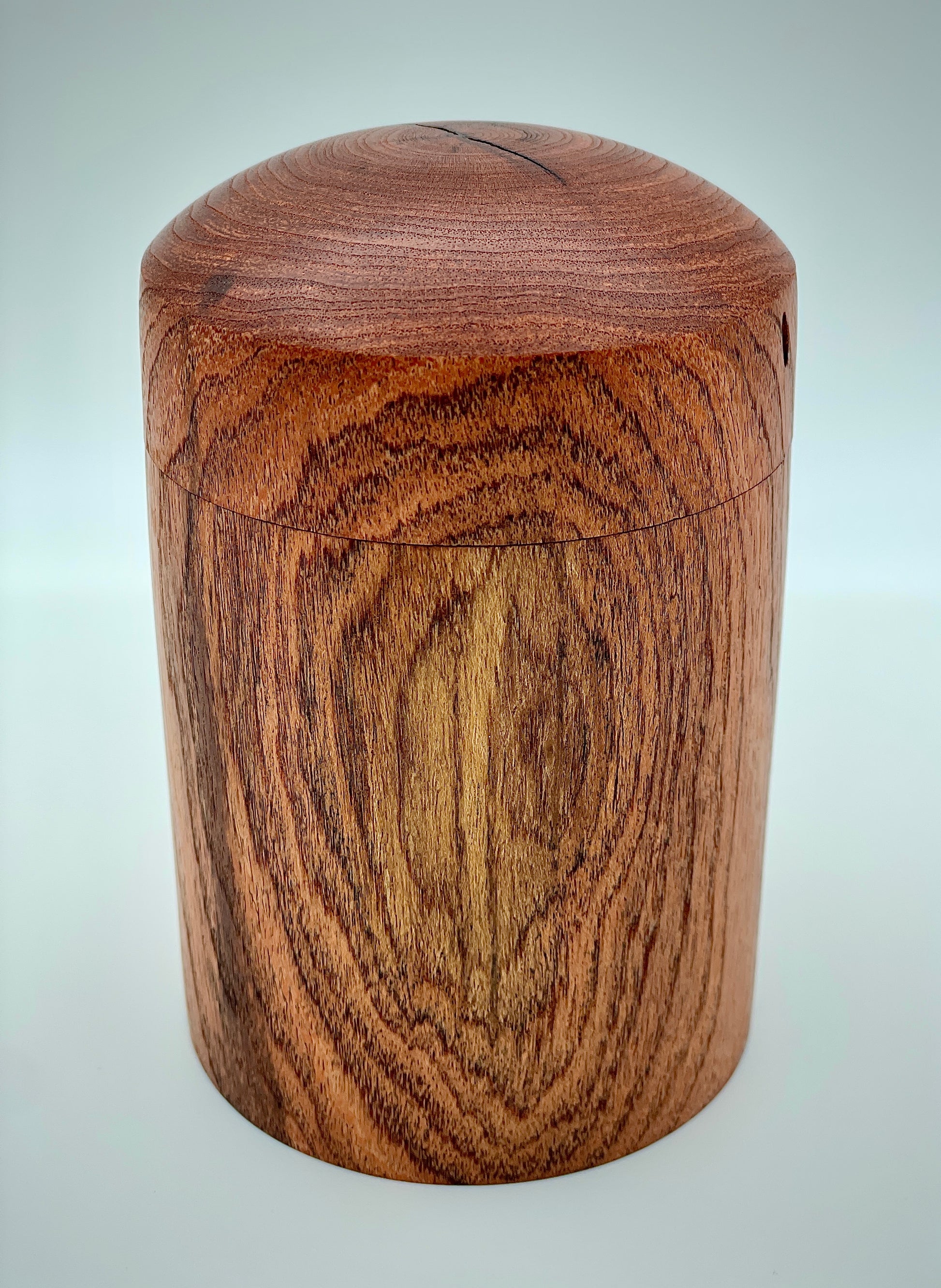 This exquisite mesquite lidded box showcases the rich, warm tones and natural character of mesquite wood. Standing 5 inches tall and 3.5 inches wide, it’s perfect for storing keepsakes or small treasures. Its sturdy craftsmanship and elegant design make it a timeless addition to any space, blending beauty with functionality. Elevate your décor with this unique piece that celebrates the natural charm of wood.