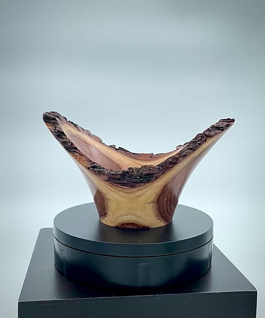 Add a touch of rustic charm to your home with our Mesquite Live Edge Bowl! Handcrafted from beautiful mesquite wood, this decorative piece boasts a rich, natural color that will add warmth to any space. Standing at 4" tall and 7" wide, it is the perfect size for displaying on a shelf or table. Elevate your decor with this unique and stunning bowl.