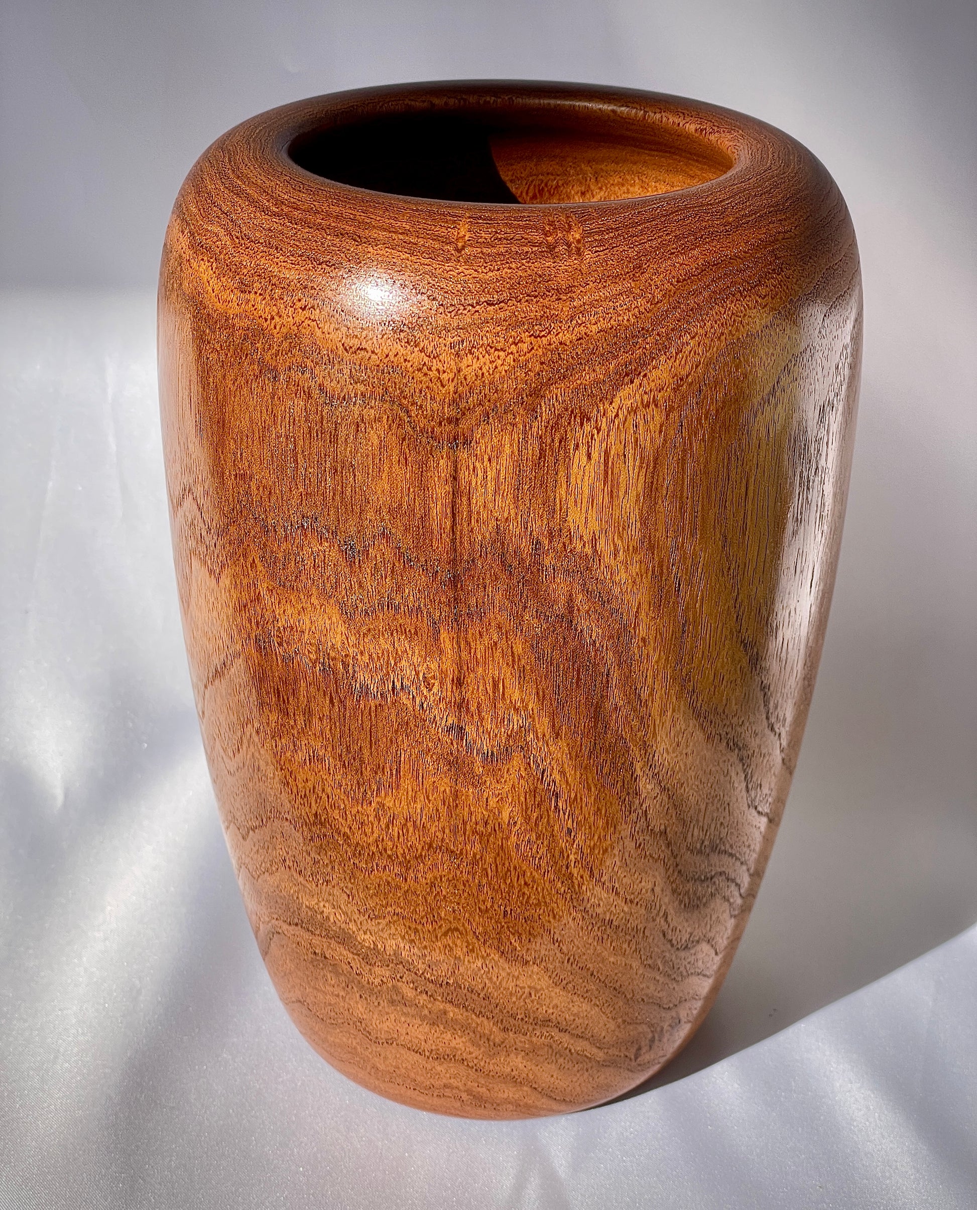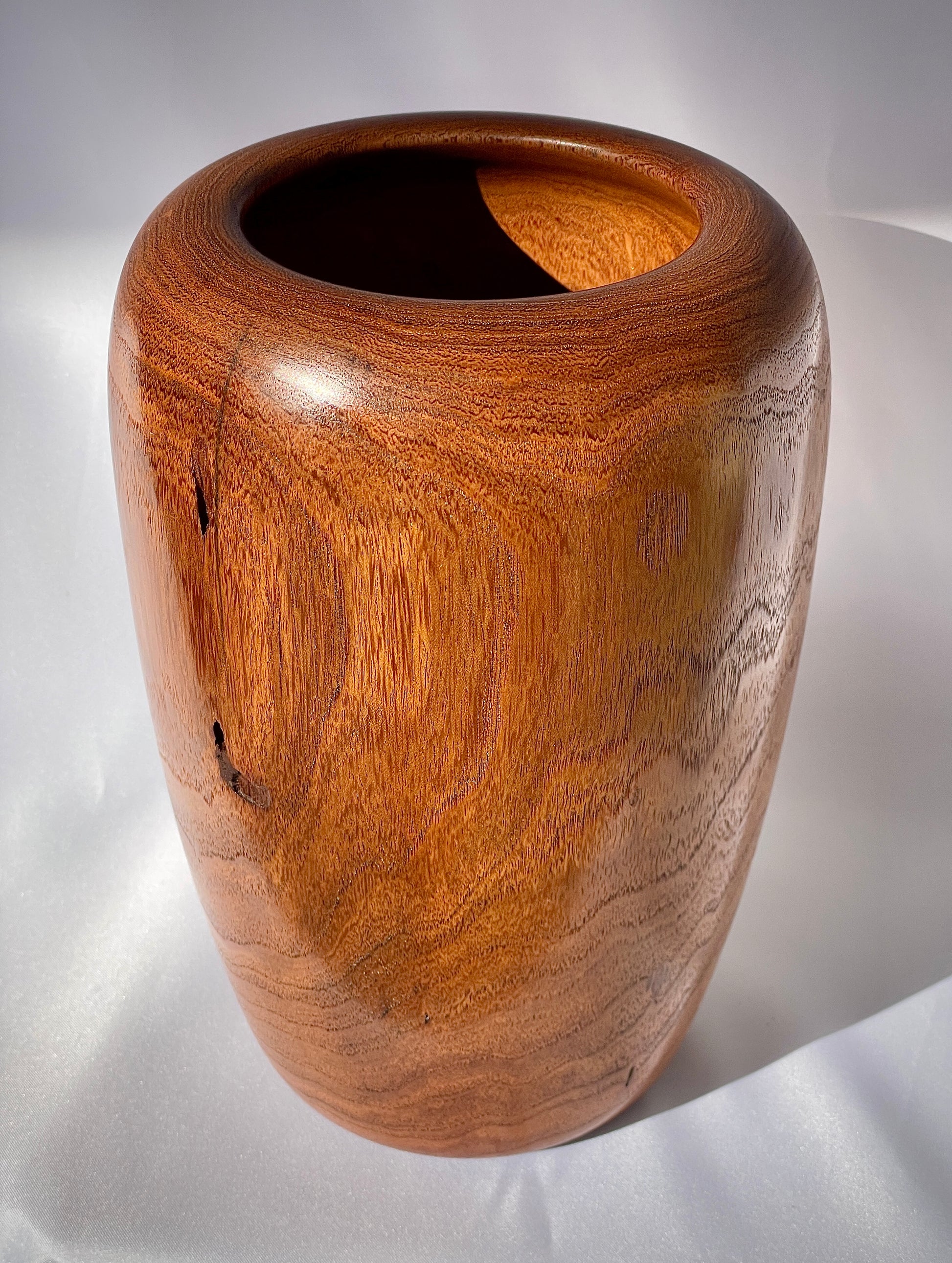Elevate your home decor with our stunning mesquite vase! Standing at 7.25" tall and 4.5" wide, its larger size highlights the beautiful grain and rich color of the mesquite wood. Add a touch of natural beauty to any room and impress your guests with this unique piece.