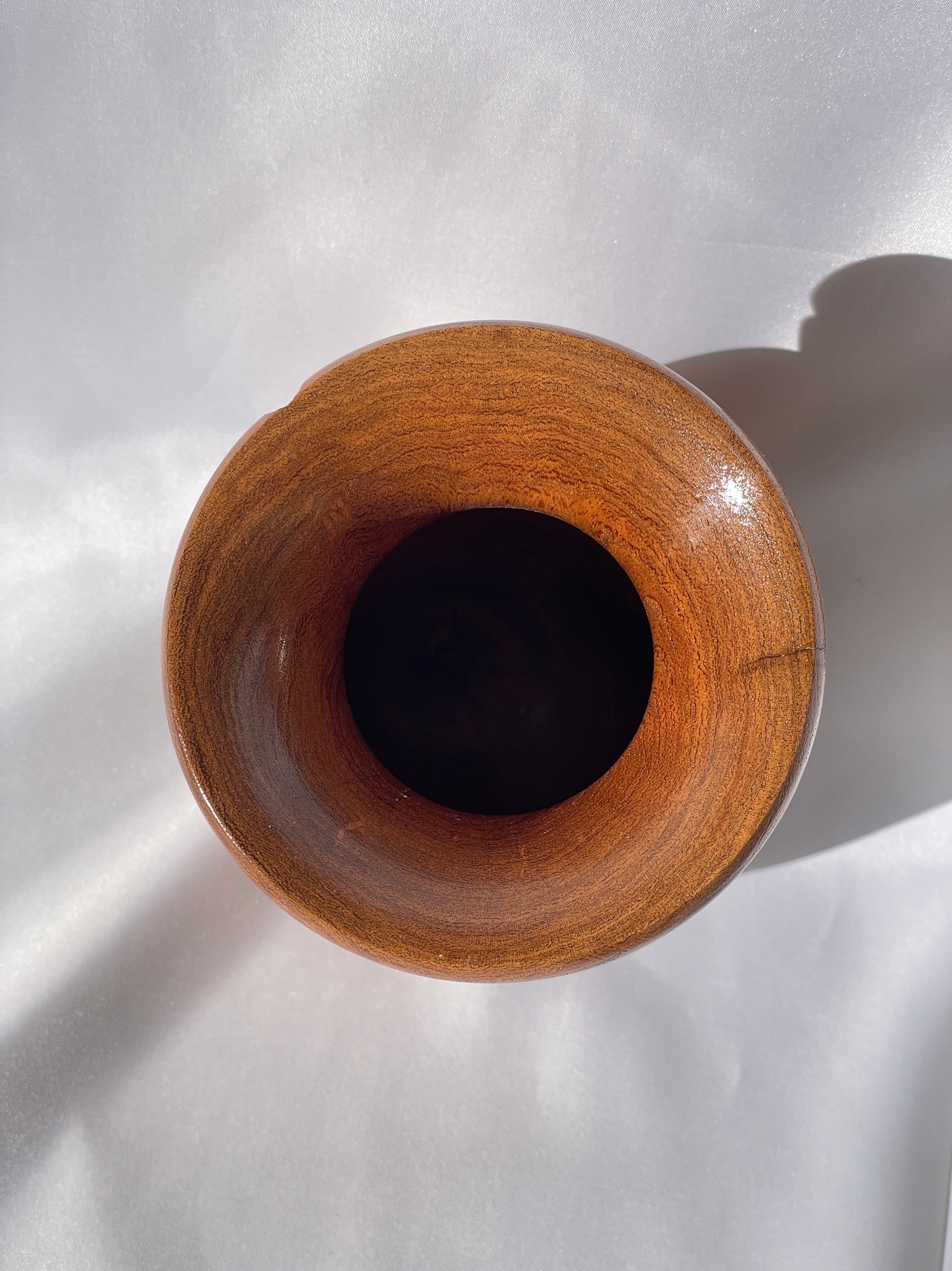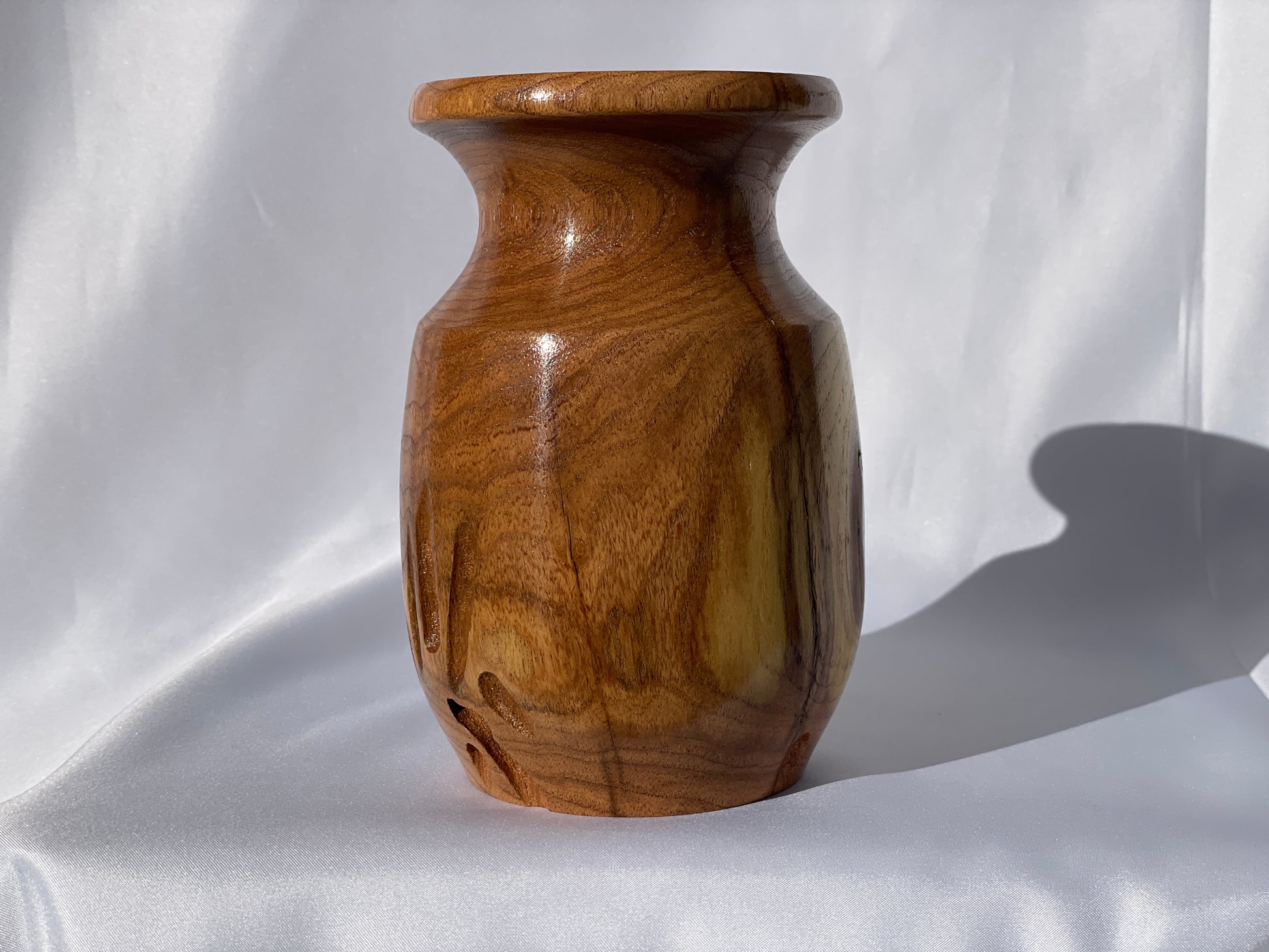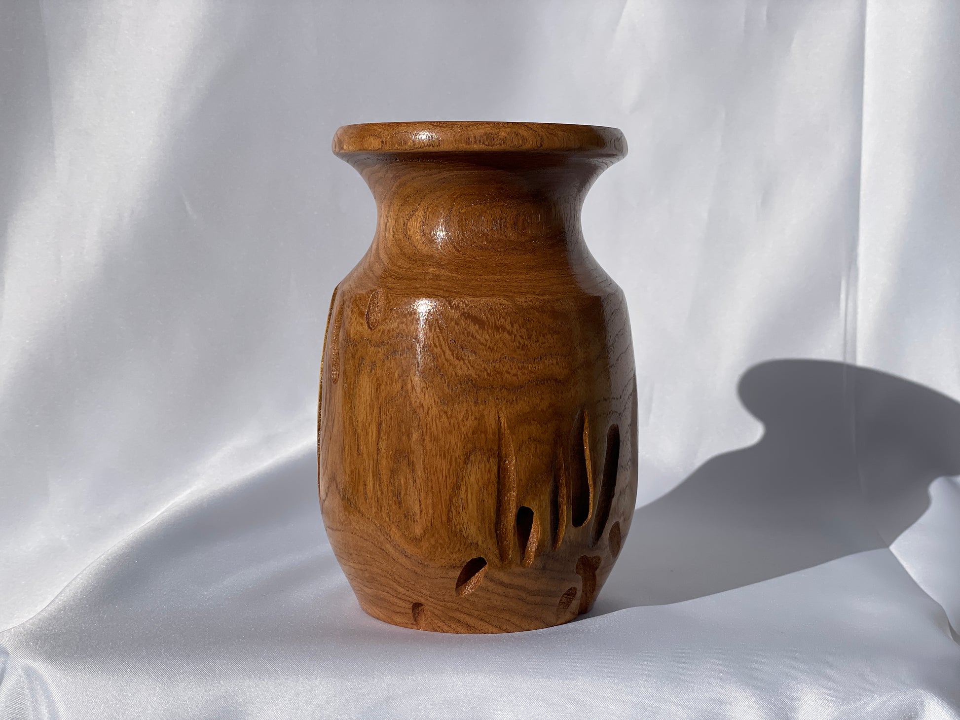 Embrace the unique beauty of our Mesquite vase, crafted from natural mesquite wood with bark accent. Standing 6 inches tall and 4 inches wide, this one-of-a-kind piece will add a touch of rustic charm to any room. Make a statement with this artisanal vase!