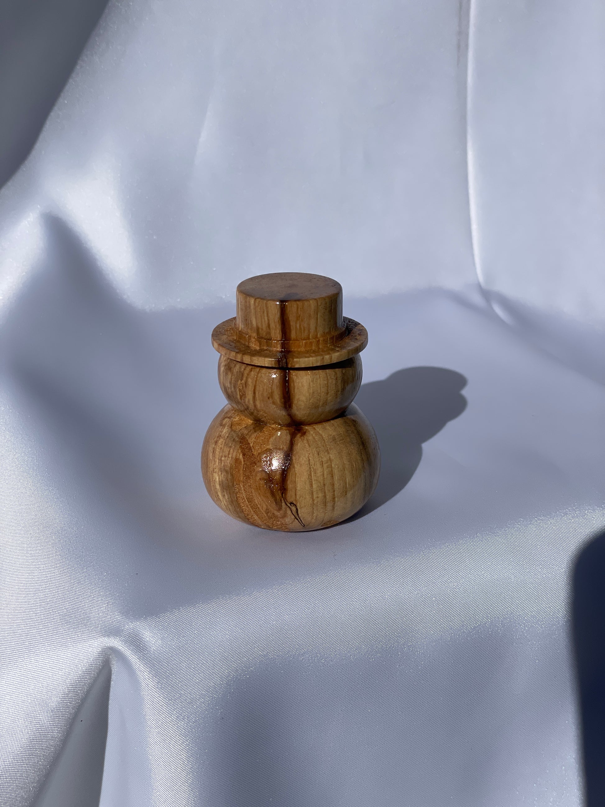 The Pecan Snowman is a charming addition to your holiday decor. Handcrafted from pecan wood, this 2.25x1.5 inch snowman features rich grain markings that add warmth and character to any room. Embrace the cozy, festive spirit with this unique and delightful piece.