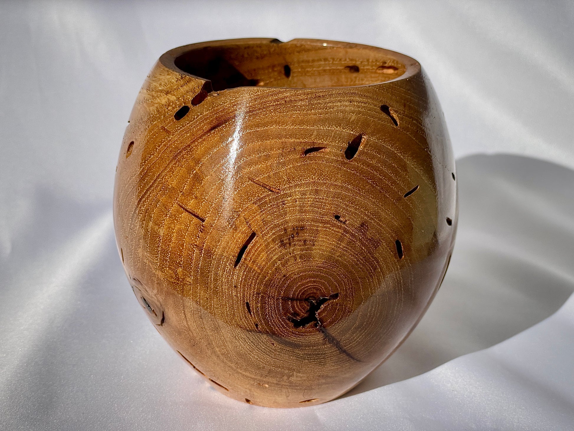 This stunning pecan vase stands at 4 inches tall and 4 inches wide. Its unique design and sturdy construction make it the perfect addition to any home decor. Bring the warmth and beauty of nature indoors with this charming pecan vase.