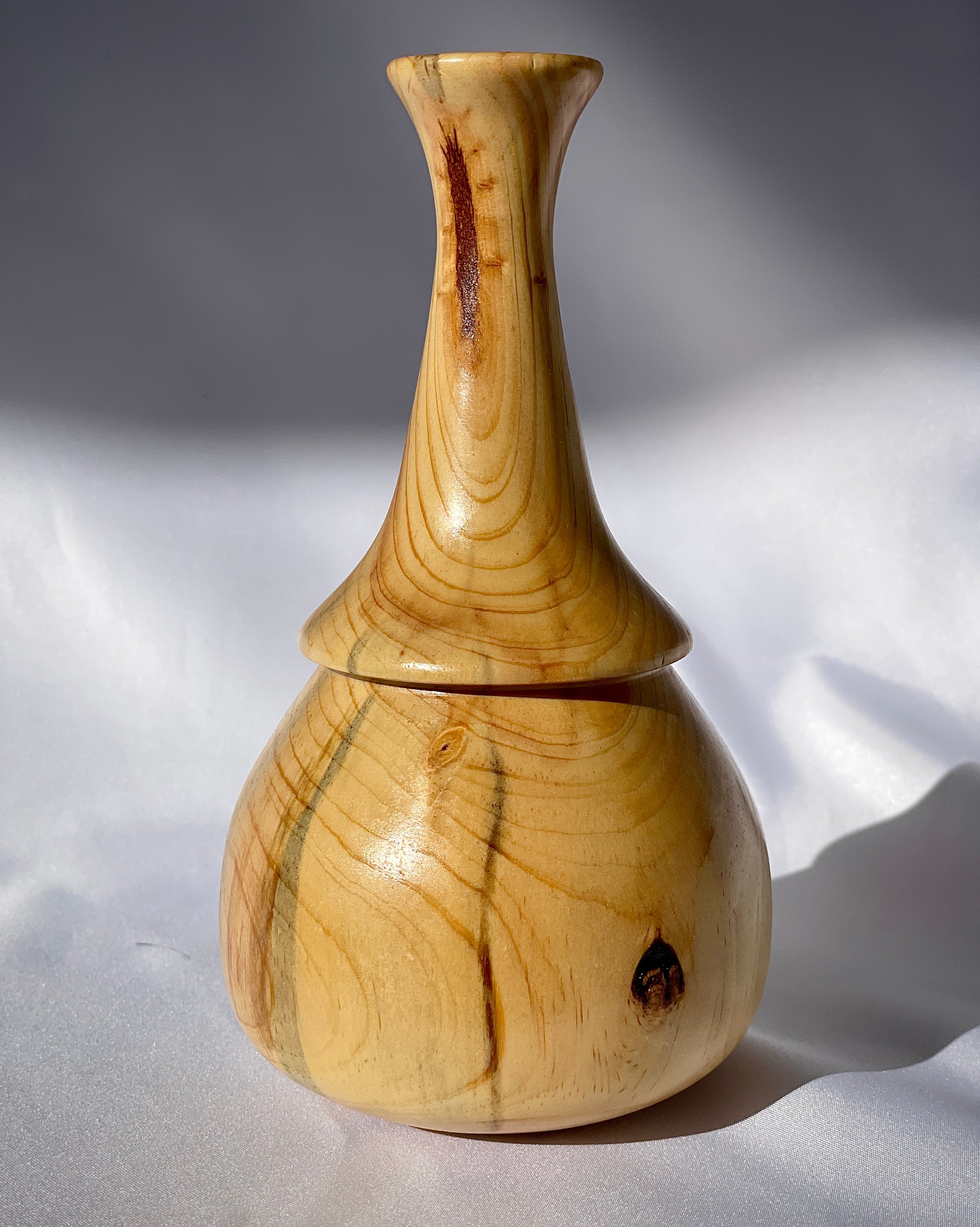 Introduce a touch of nature to your home decor with our beautifully crafted pine bud vase. Standing at 6" tall and measuring 3.25" wide, this vase adds a unique and elegant touch to any space. Perfect for showcasing your favorite buds or branches.