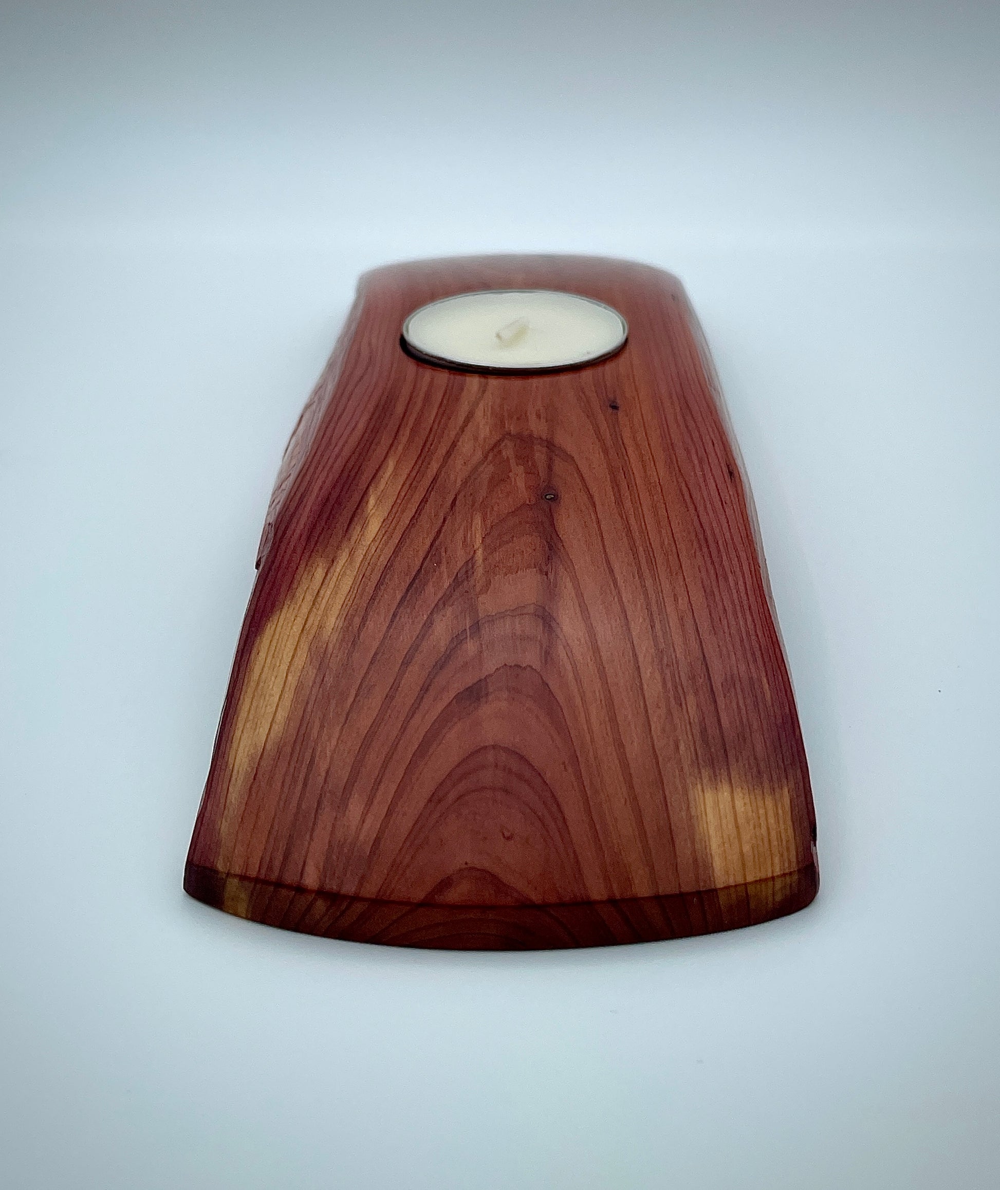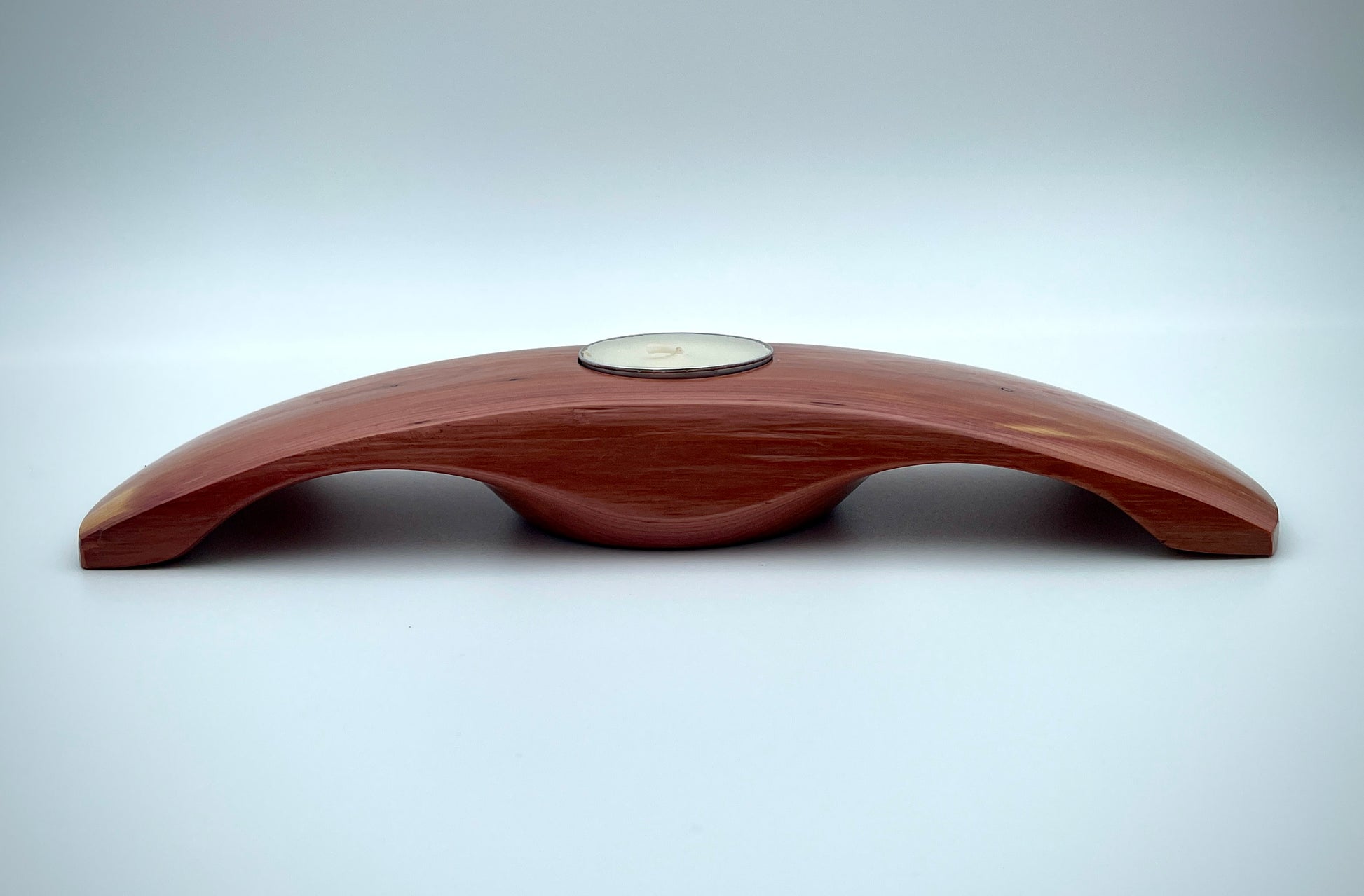Crafted from rich redwood, this winged tealight combines natural elegance with refined design. Measuring 1" tall by 8" wide, its warm tones and graceful form create a sophisticated ambiance, perfect for enhancing any space with subtle, timeless charm.