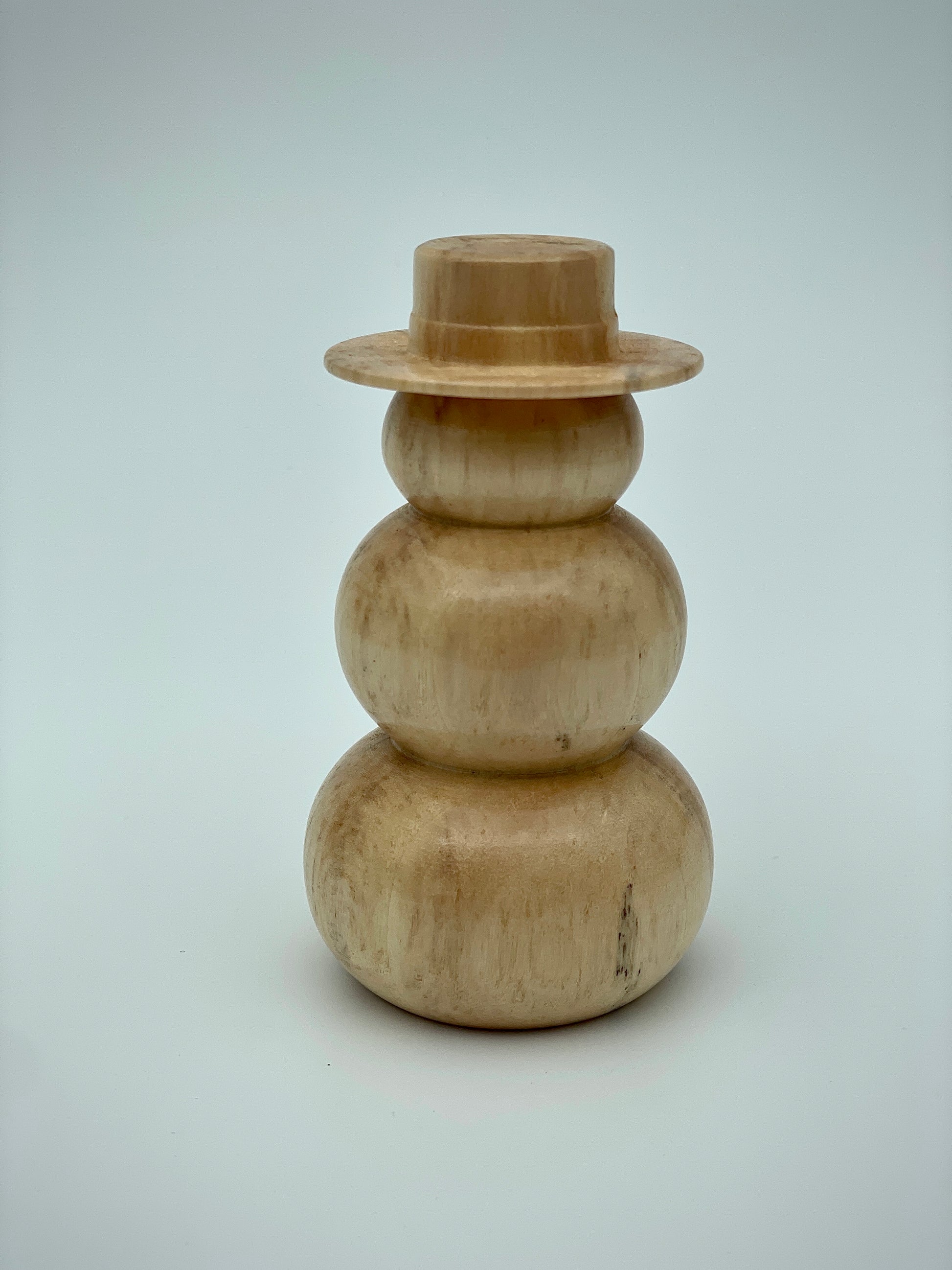 Experience the whimsical charm of the winter season with our handmade Snowman! Crafted from fine Pecan wood, this adorable decoration stands at 3.5 inches tall and 2 inches wide. Bring a touch of seasonal cheer to your home with this delightful addition.