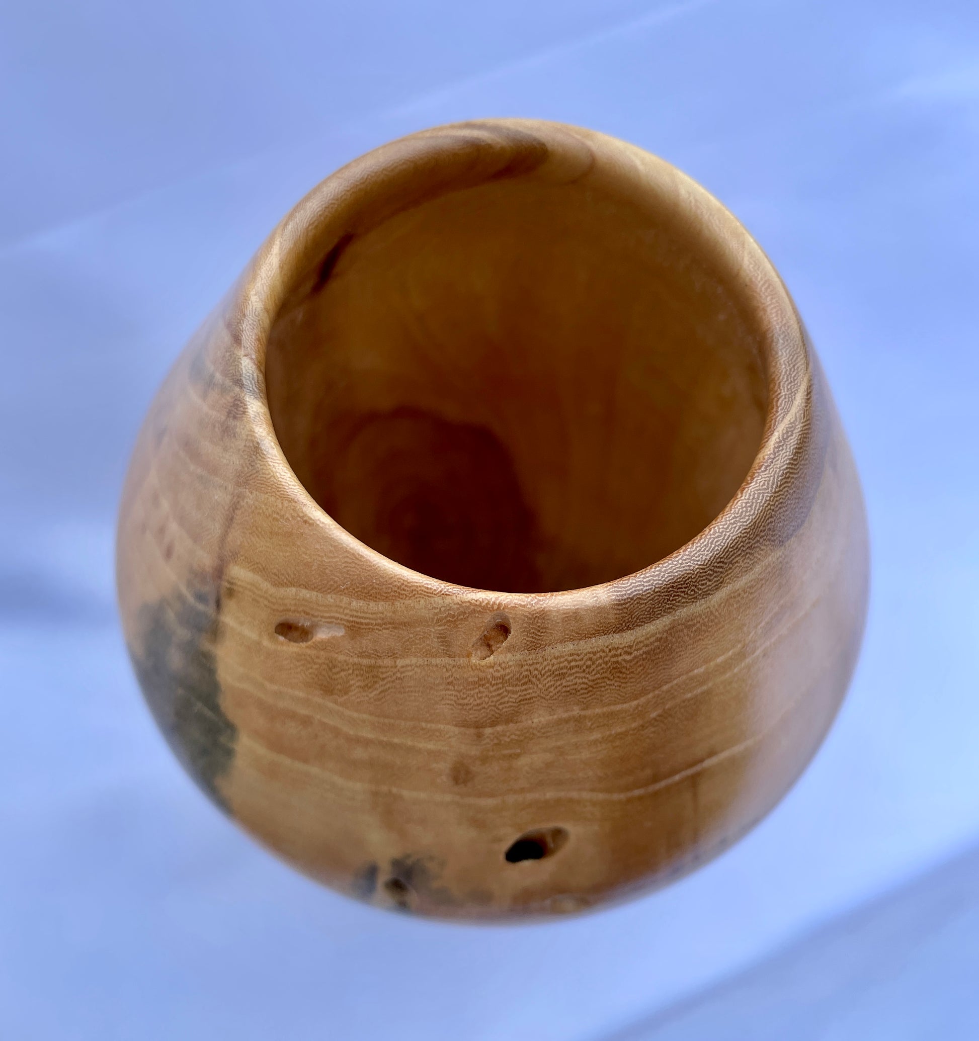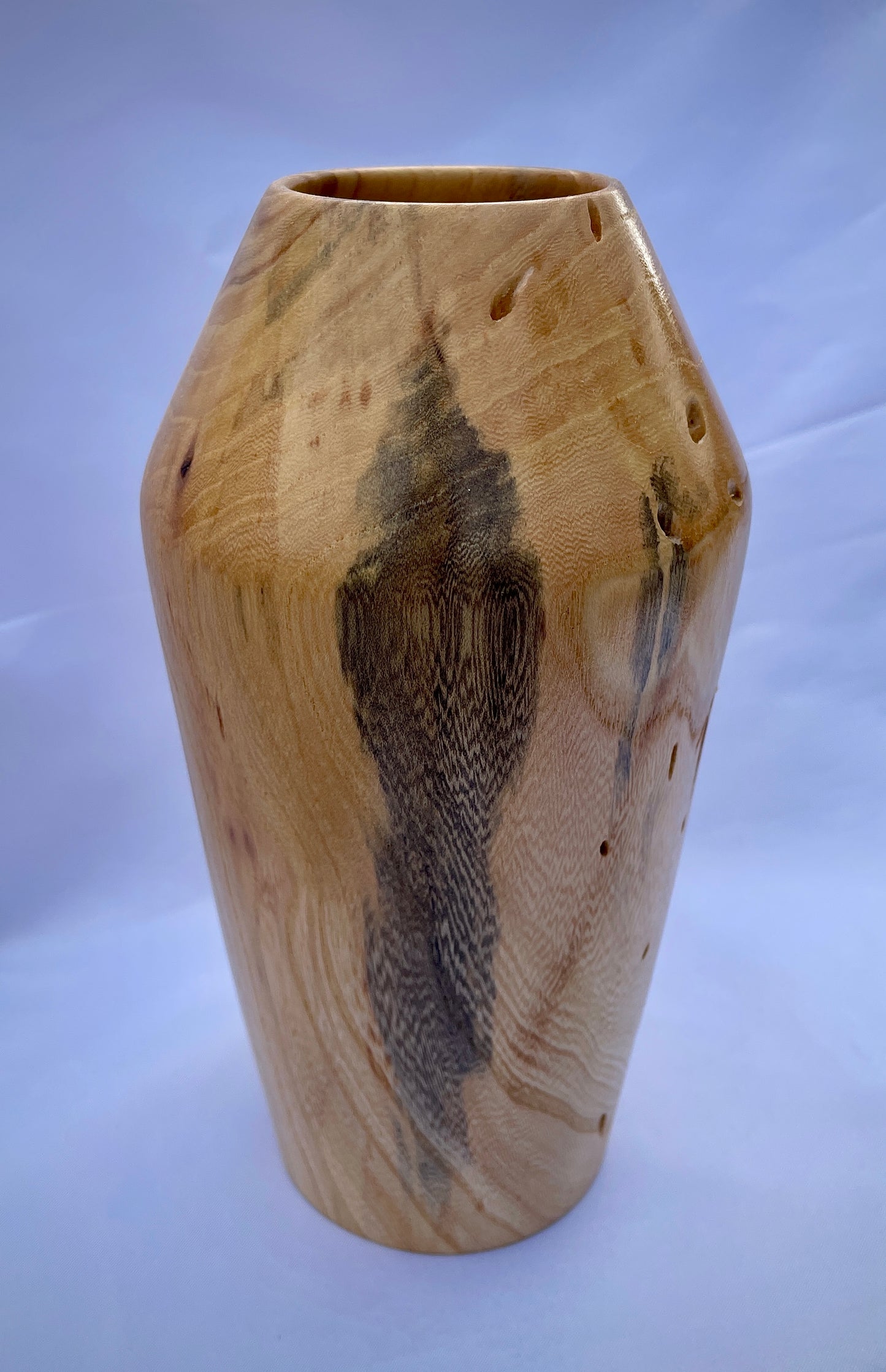 Add a touch of rustic elegance to your home with our 7" tall x 3.5" wide tapered pecan vase. Its unique coloration and pattern make it a stand-out piece, perfect for displaying dried flowers or standing alone. Embrace nature's beauty with this one-of-a-kind vase.