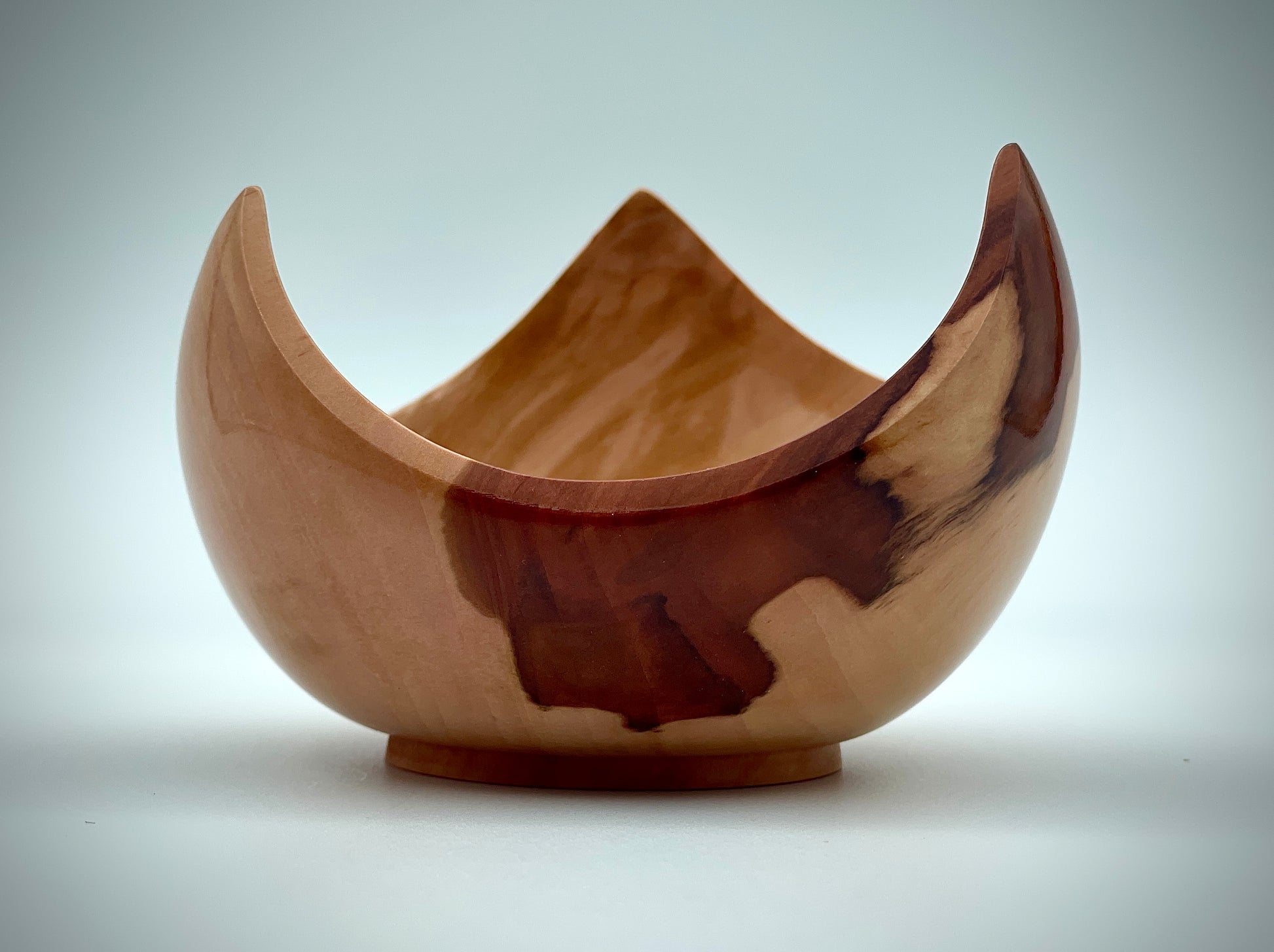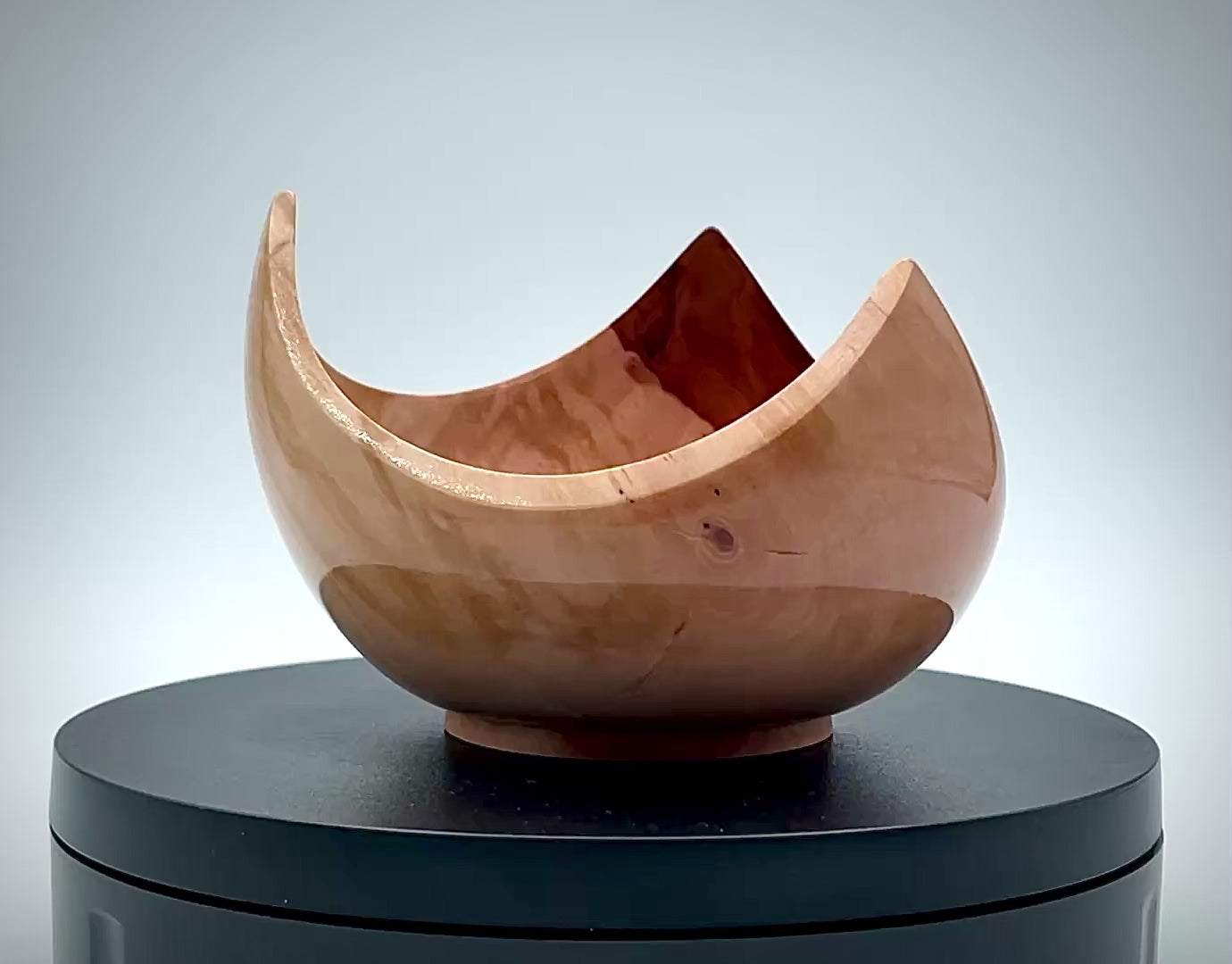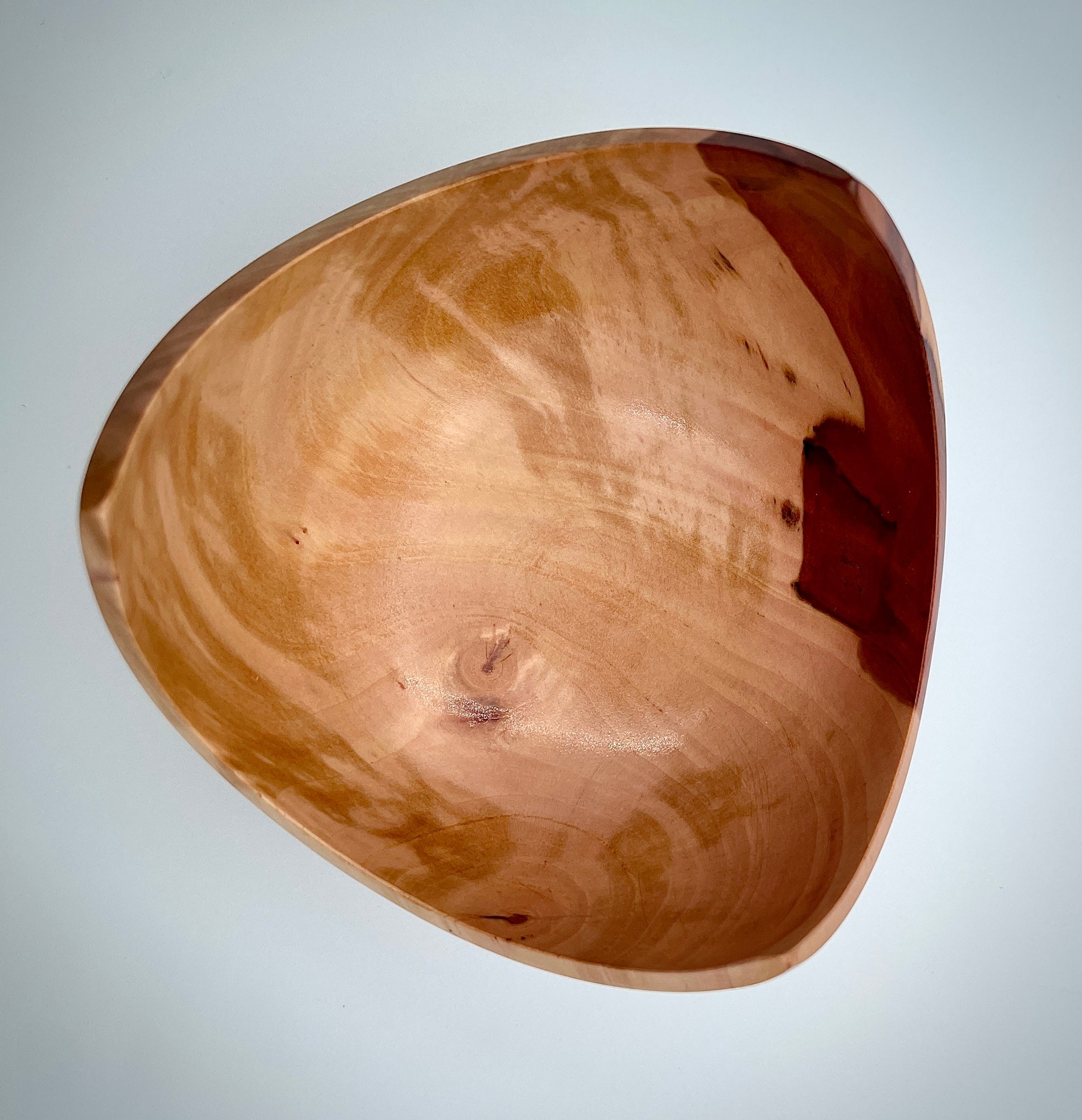 Crafted from rich Texas cedar, this three-cornered dish stands 3 inches tall and spans 4 inches wide. Its unique color pattern highlights the natural beauty of the wood, making it a refined decorative piece that adds subtle elegance to any space. Perfect for showcasing small treasures or simply as an artful accent.