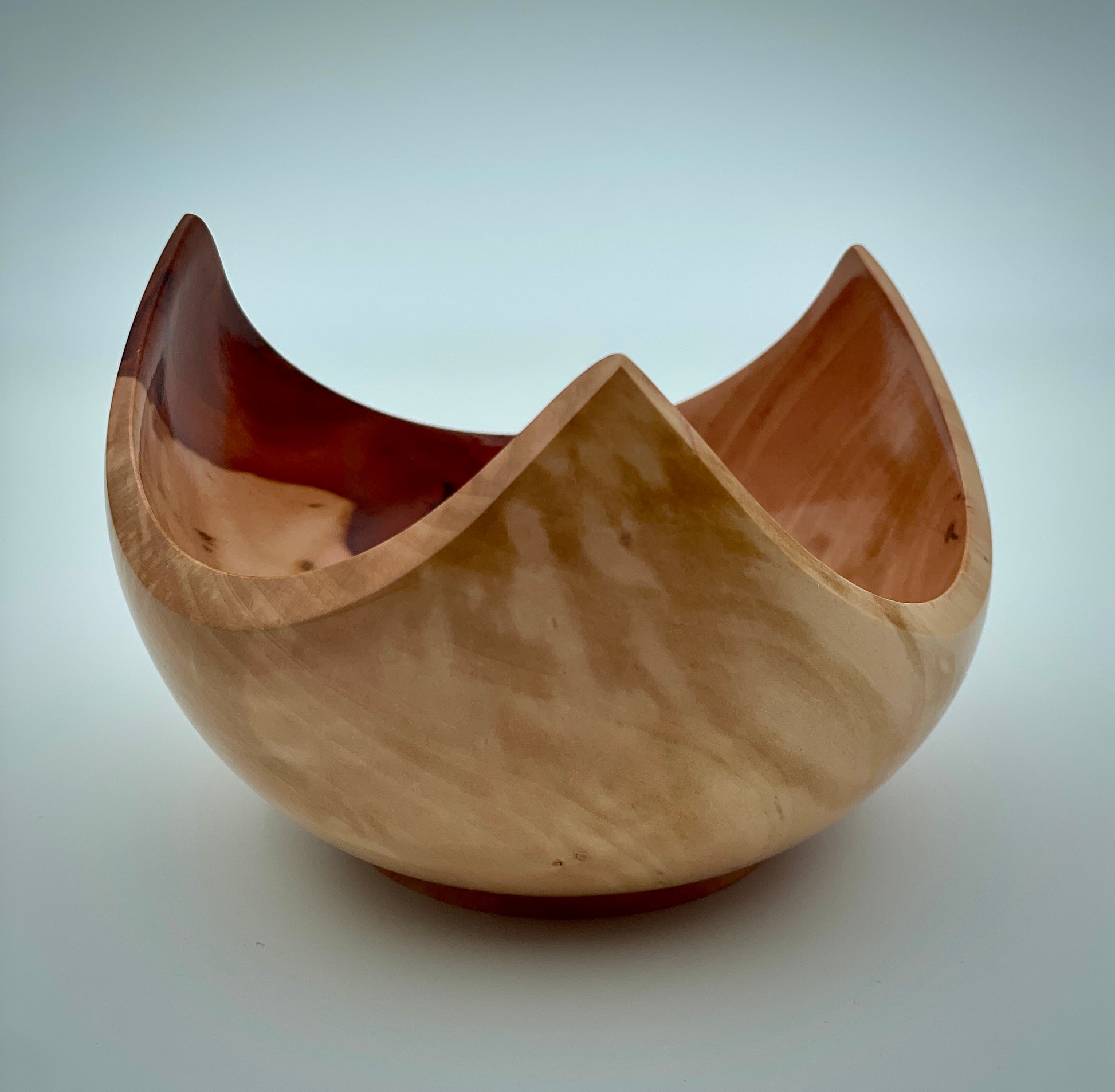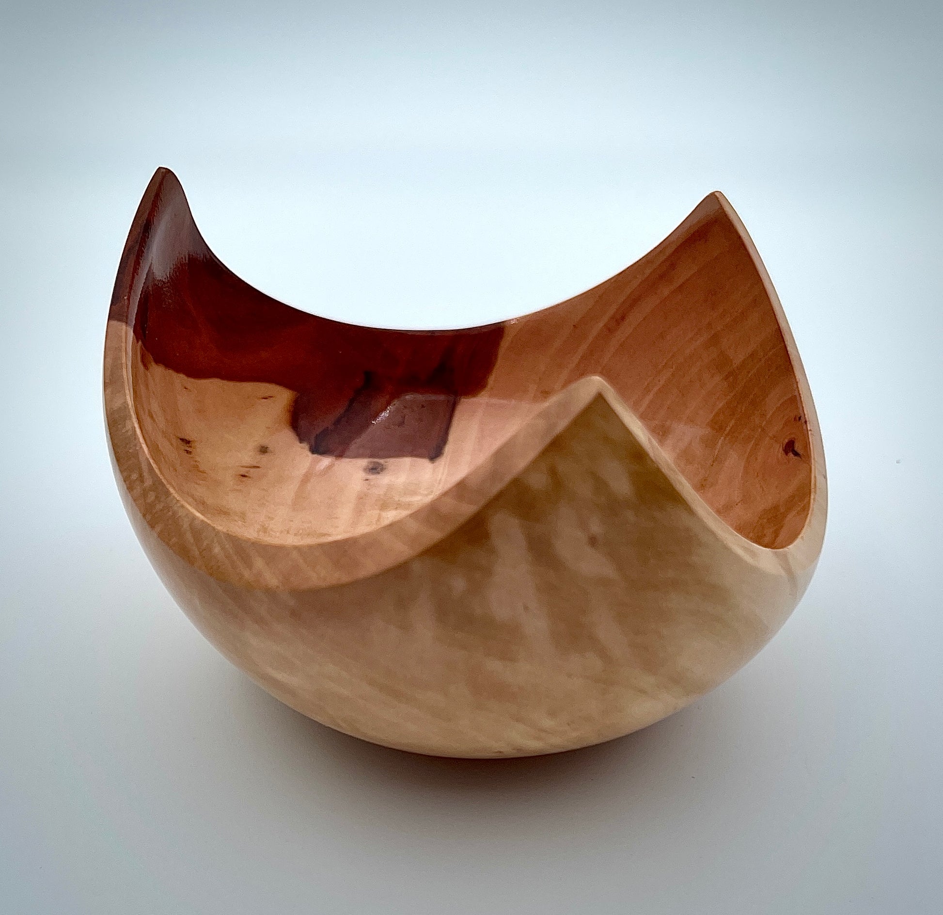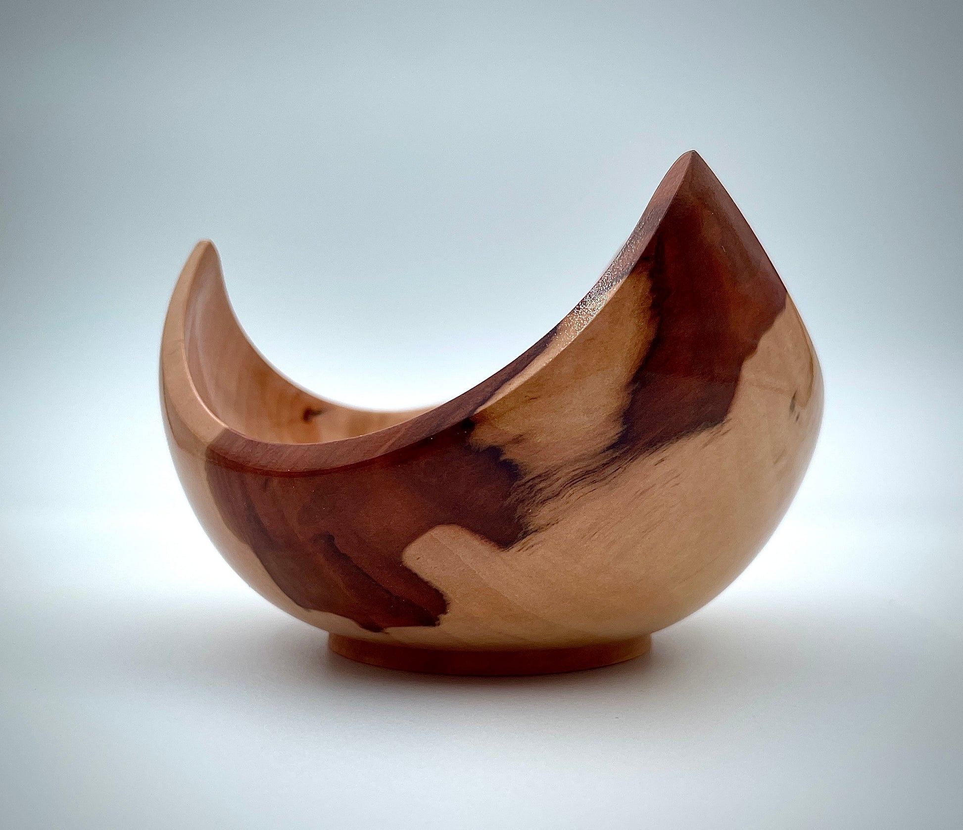 Crafted from rich Texas cedar, this three-cornered dish stands 3 inches tall and spans 4 inches wide. Its unique color pattern highlights the natural beauty of the wood, making it a refined decorative piece that adds subtle elegance to any space. Perfect for showcasing small treasures or simply as an artful accent.