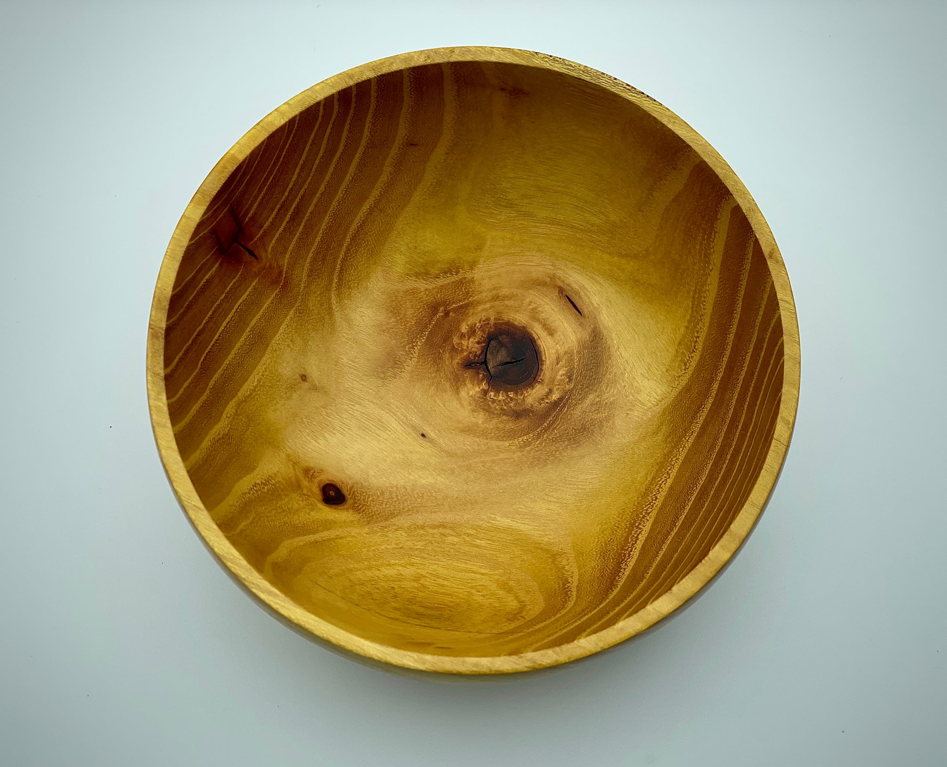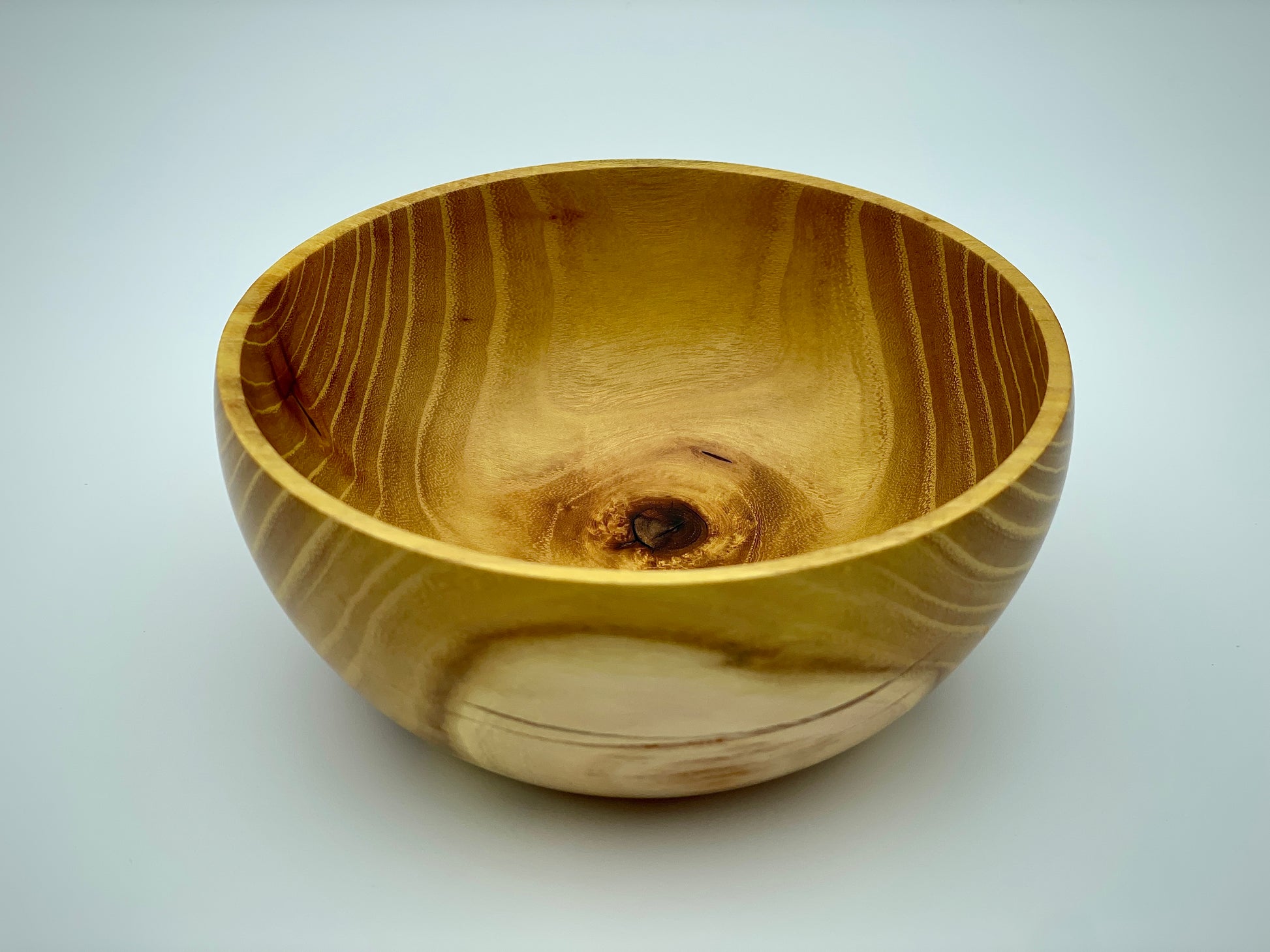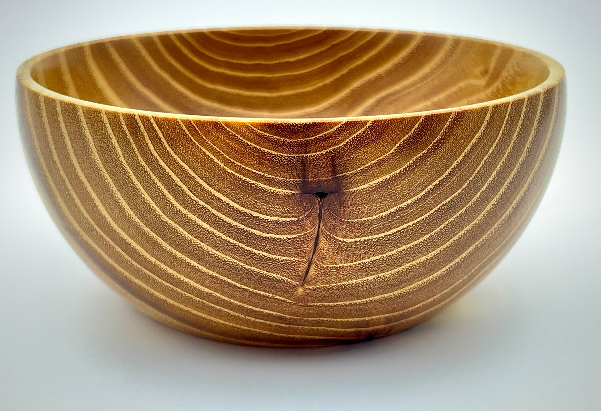 This decorative bowl is made from Osage orange wood and boasts a striking golden yellow color. The unique character of this bowl adds an elegant touch to any room. Standing at 2" tall and 5" wide, it is the perfect size for showcasing small items or as a stand-alone piece.
