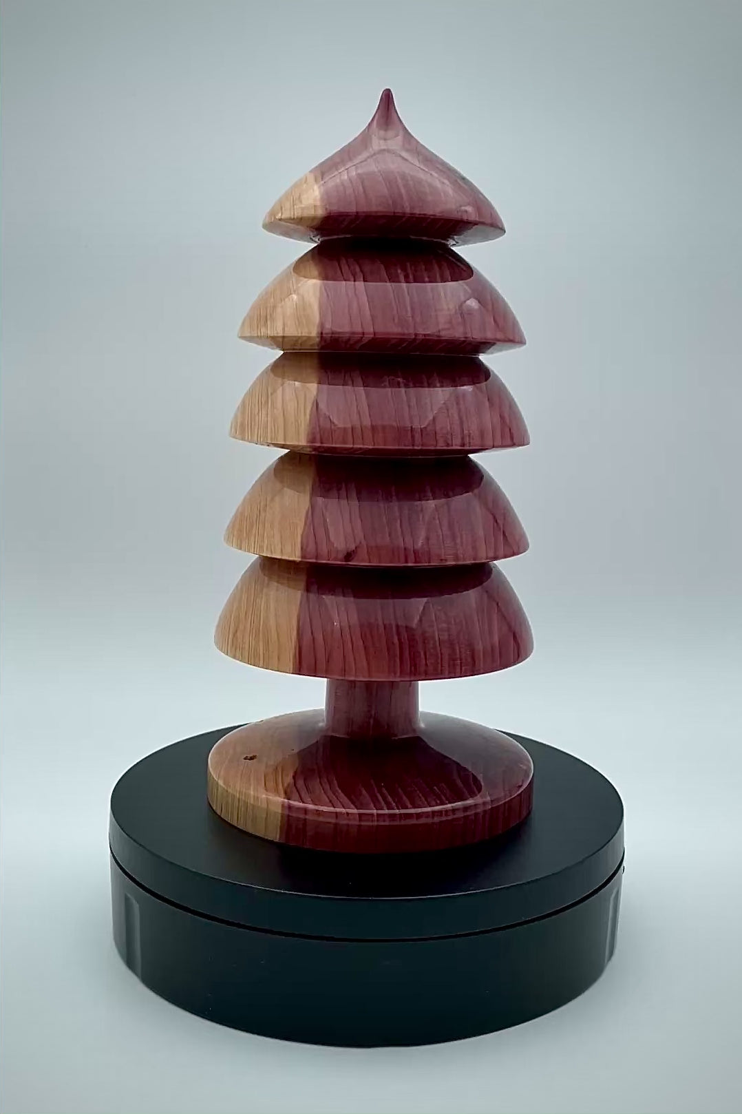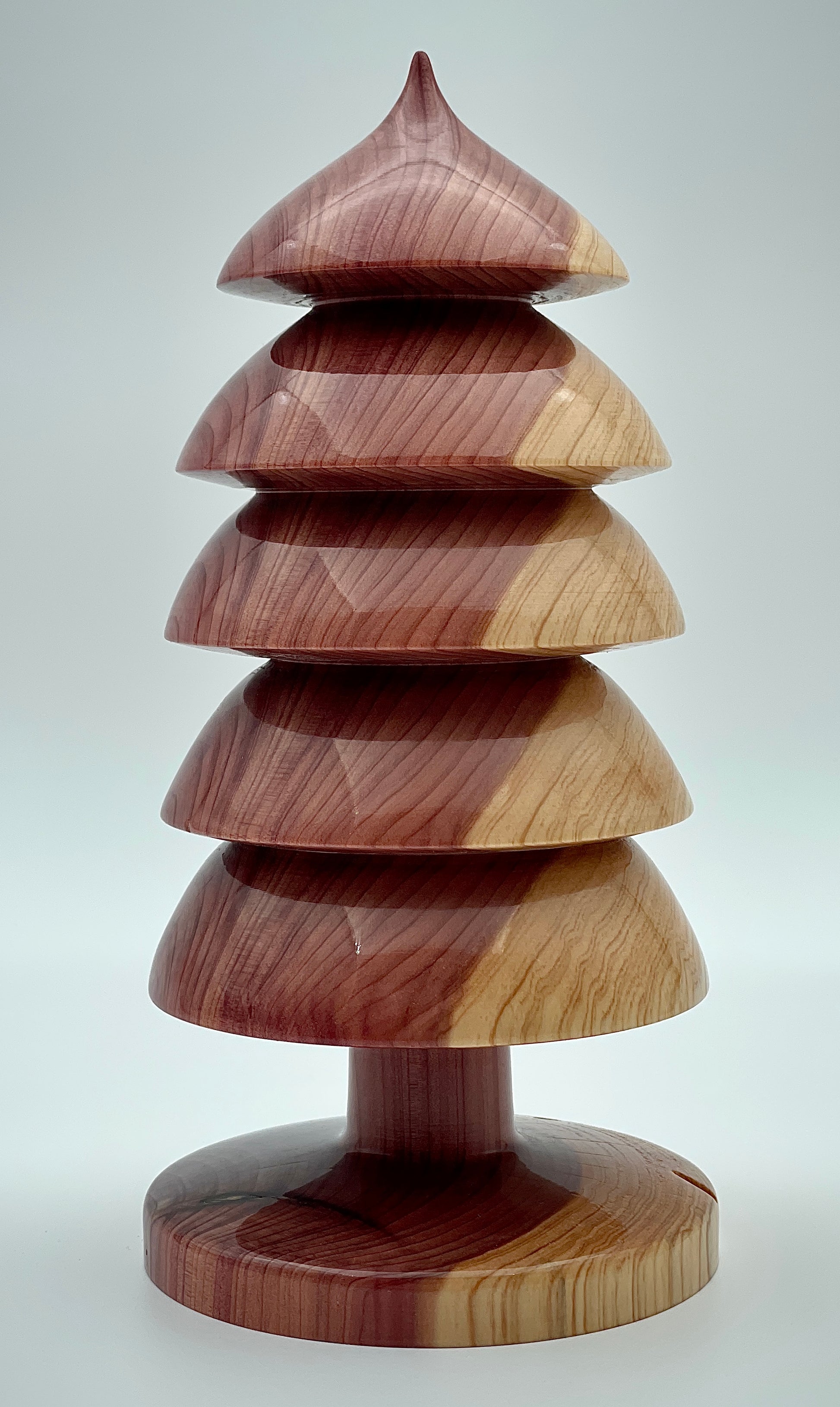 Western redwood tree. With a height of 7.5 inches and a width of 3.5 inches, the tree's rich coloration is striking. The contrast between colors serves to further accentuate its beauty.